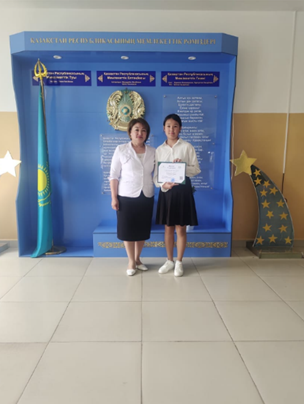 ЕЛАМАН ЖАСМИН I- дәрежелі диплом КУАНЫШОВА ХАТИРА мадақтамамен марапатталды.