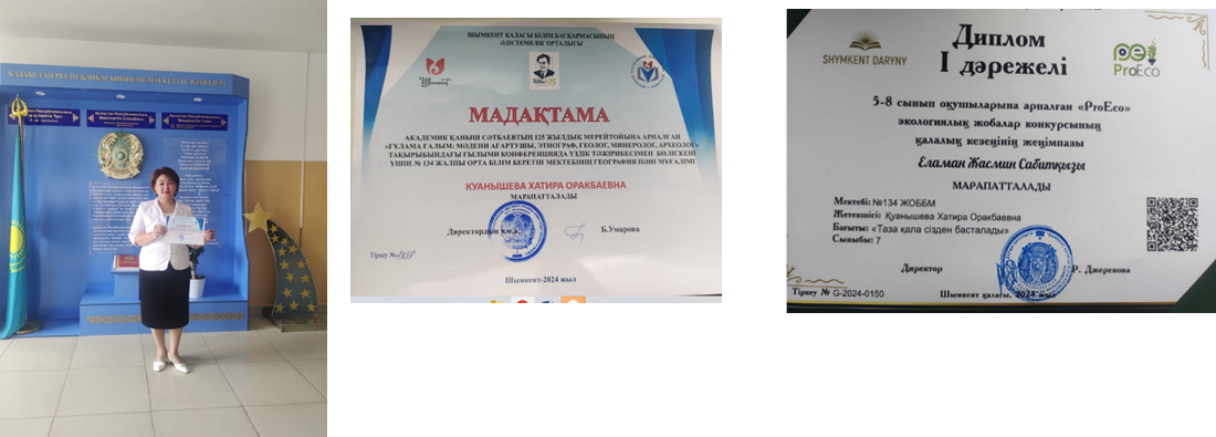 Қалалық «Үздік сабақ жоспары» атты сырттай байқауда озық идеялы іс- тәжірібесін ұсынғаны үшін №134 жалпы орта білім беретін мектебінің мұғалімдері І,ІІ дәрежелі дипломдармен марапатталды.