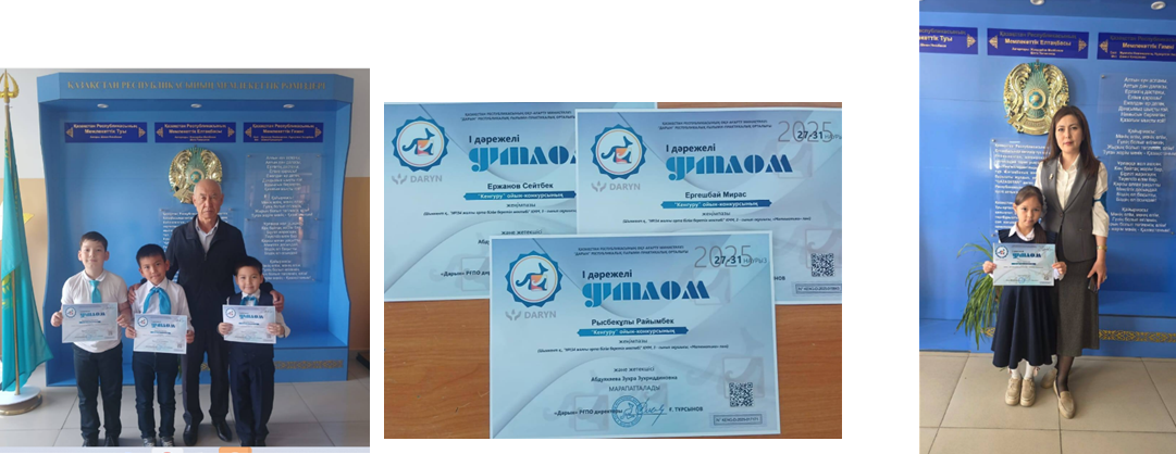 Дарынды мектеп оқушыларын анықтау, лингвистикалық және математикалық сауаттылығын арттыру және ғылым негіздері бойынша олардың білімдерін тереңдету мақсатында Қазақстан Республикасы Оқу-ағарту министрлігінің «Дарын» республикалық ғылыми-практикалық орталығы» РМҚК 2025 жылғы 27-31 наурыз аралығында «Кенгуру" халықаралық ойын конкурсын өткізді.