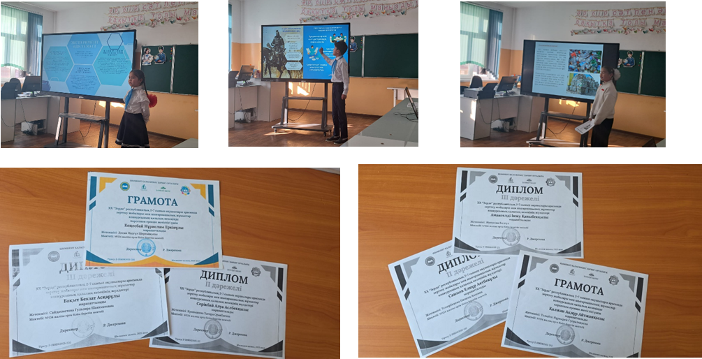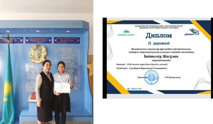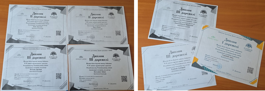 III-дәрежелі диплом 8сынып оқушылары Бегалы Аружан III-дәрежелі диплом, Бегалиев Айдос I-дәрежелі диплом