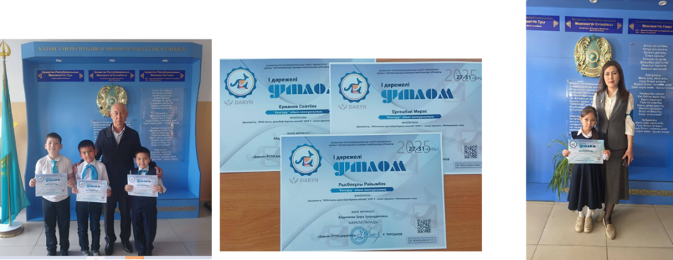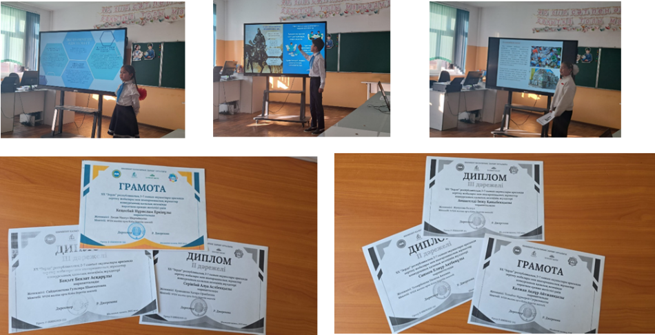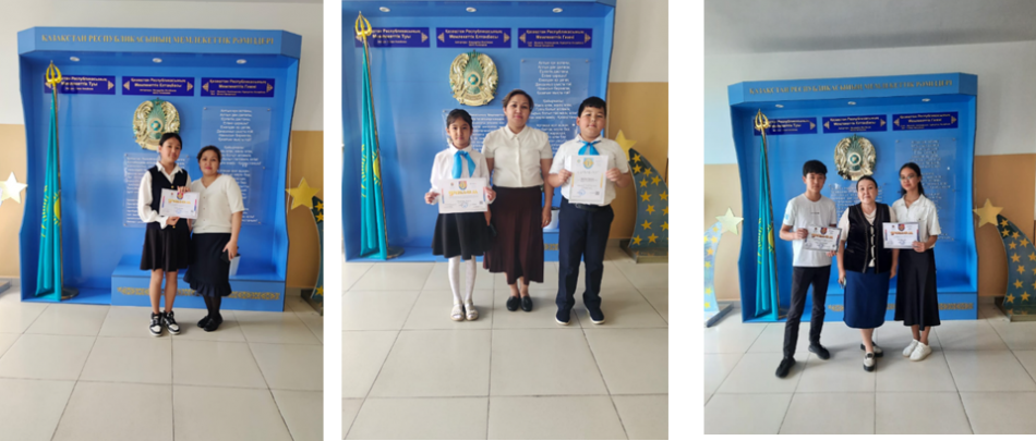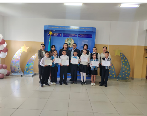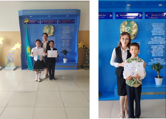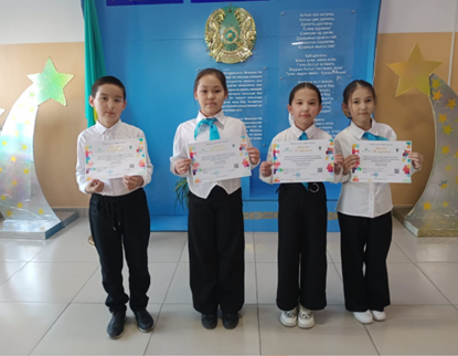 4-сынып оқушылары Умирбек Мирас III-дәрежелі дипломмен Ахмедова Мерей мадақтамамен марапатталады.