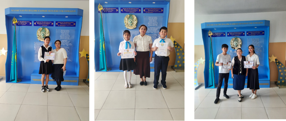 Шымкент қаласы білім басқармасы Дарын орталығы ұйымдастырған жалпы білім беретін пәндер бойынша 5,6,7,8-сыныптар оқушыларына арналған Республикалық Олимпиаданың үшінші (қалалық) кезеңіне қатысып жеңімпаз атанған мектебіміздің оқушылары