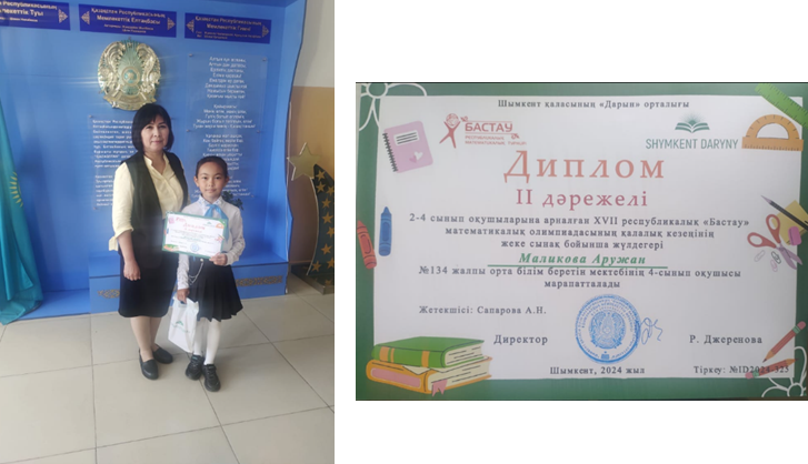 Шымкент қаласы Дарын орталығы ұйымдастырған 2-4сынып оқушыларына XVIIреспубликалық "Бастау"математикалық олимпиадасының қалалық кезеңінің жеке сынақ бойынша жүлдегері