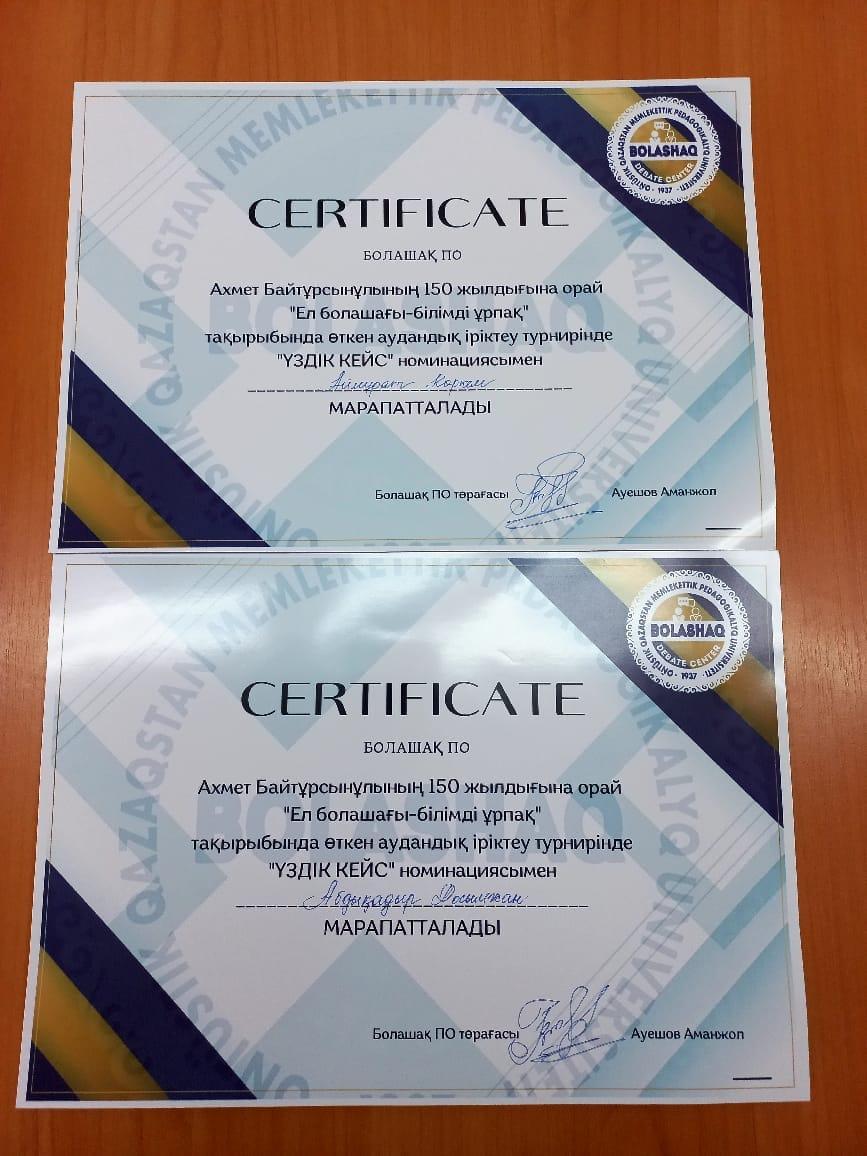 2022 жылы 4 қараша күні А.Байтұрсынұлының 150 жылдық мерейтойы қарсаңында білім алушылардың бойында азаматтық ұстаным, сыни ойлау дағдыларын қалыптастыру мақсатында Шымкент қаласы білім басқармасы Қосымша білім беру орталығының ұйымдастыруымен «Ел болашағы-білімді ұрпақ» тақырыбында аудандық дебат турнирінің Еңбекші аудандық білім беретін мектеп оқушыларының арасындағы іріктеу кезеңі өтті. Турнир нәтижесінде мектебіміздің оқушылары «Үздік кейс» Айтмұрат көркем және Абдықадыр Досымжан марапатталды.
