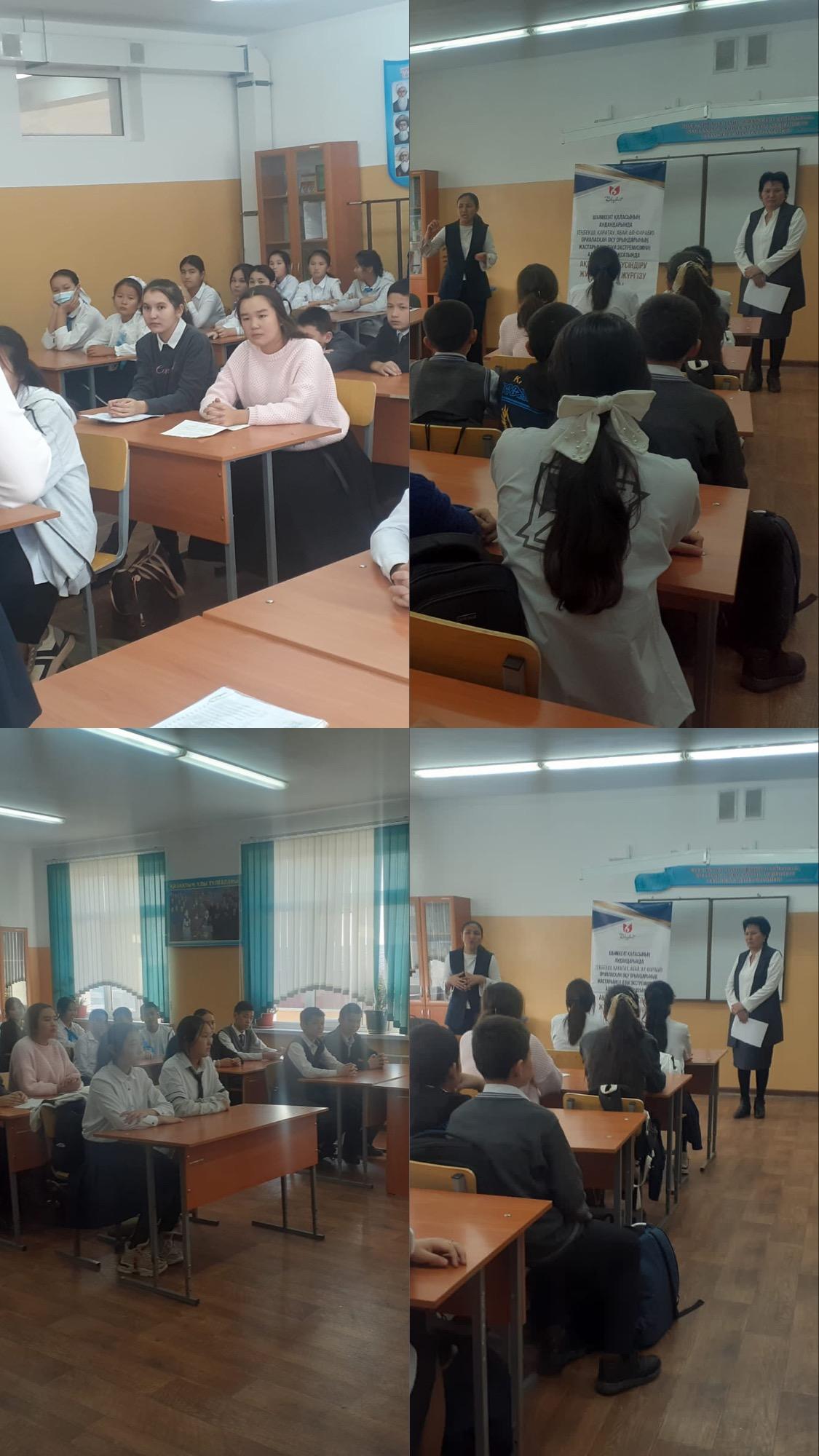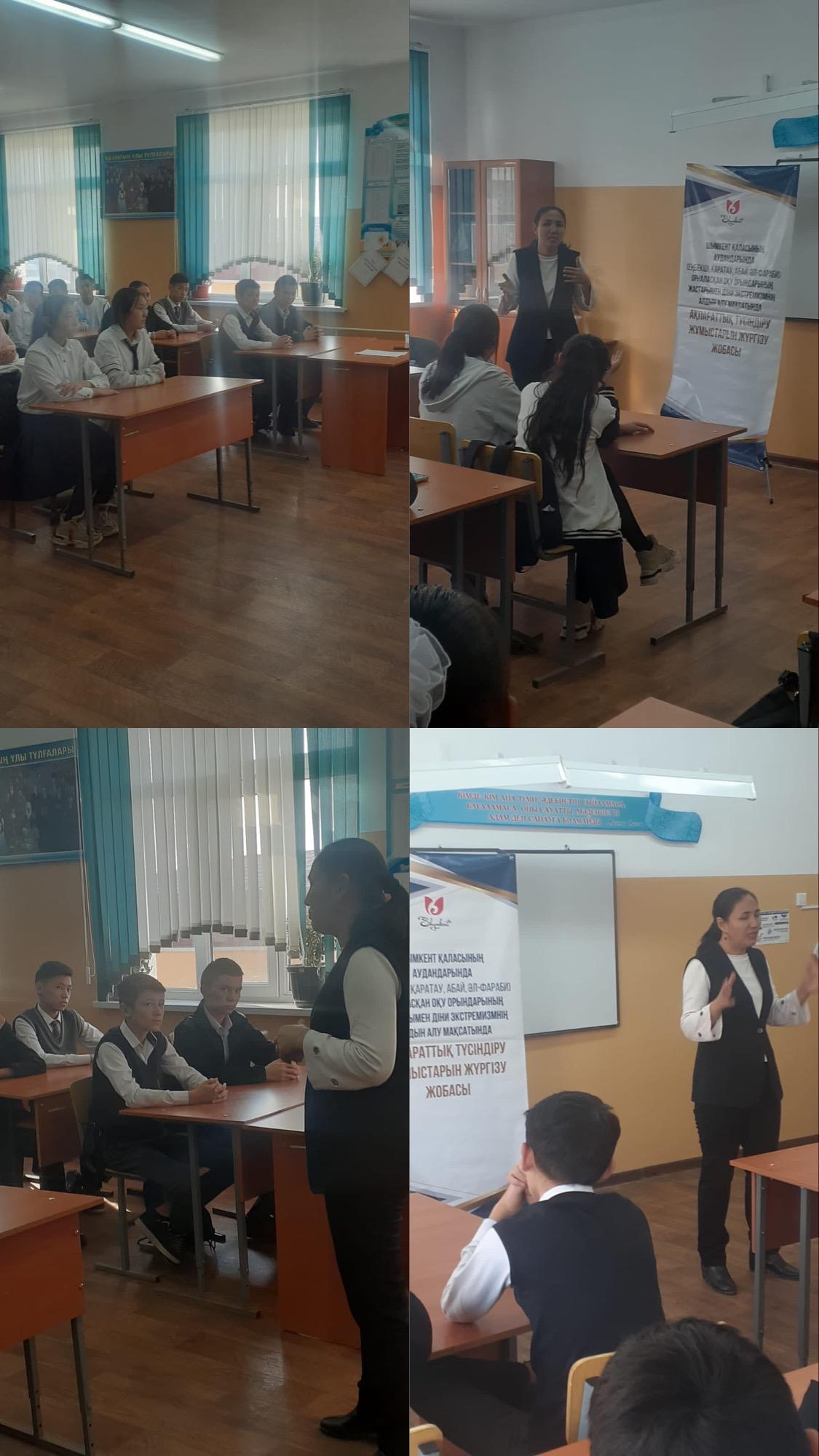Шымкент қаласы дін істер басқармасының тапсырмасымен “БӘЙТЕРЕК” жастар ұйымы қоғамдық бірлестігінің ұйымдасуымен 11.11.2022ж күні Шымкент қаласы білім басқармасына қарасты №134 жалпы орта білім беретін мектебінде діни экстремизмнің алдын алу мақсатында ақпараттық түсіндіру жұмыстары жүргізілді.