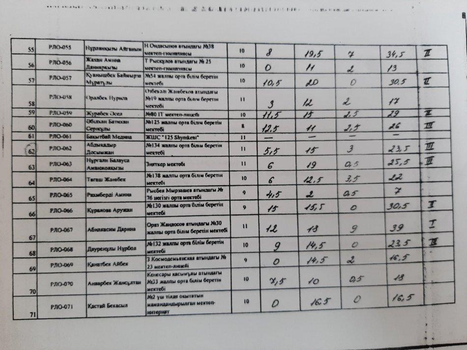 Олимпиадаға Жамбылқызы А., Әшірханова Ә., Хасанова А., Қазыбекова А., Алтынбекова Д., Абдықадыр Д., Айтмұрат К., Пернебекова Д. қатысты.