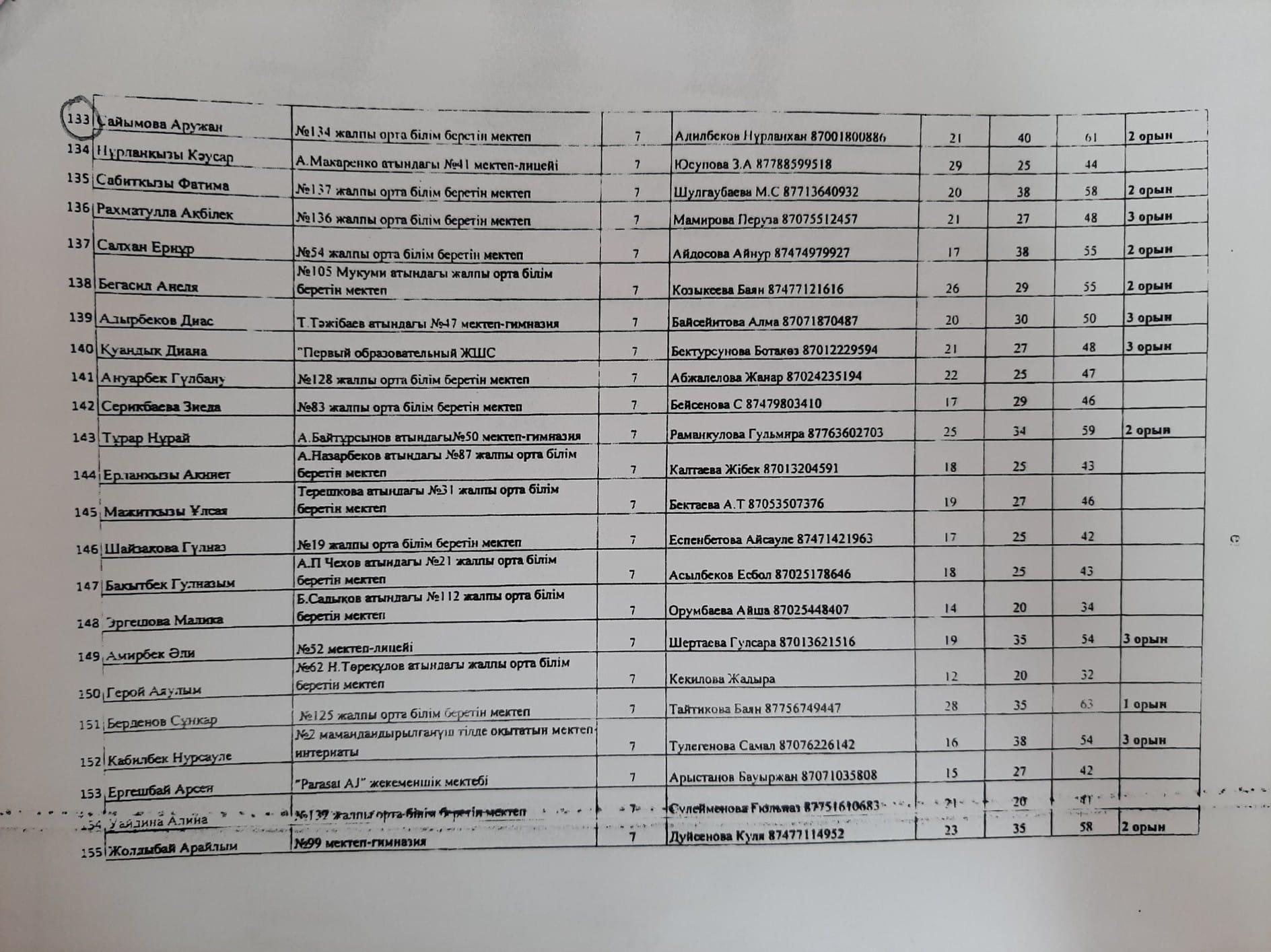 Байқаудың нәтижесі бойынша Саймова Аружан 61 ұпаймен ІІ орын иеленді.
