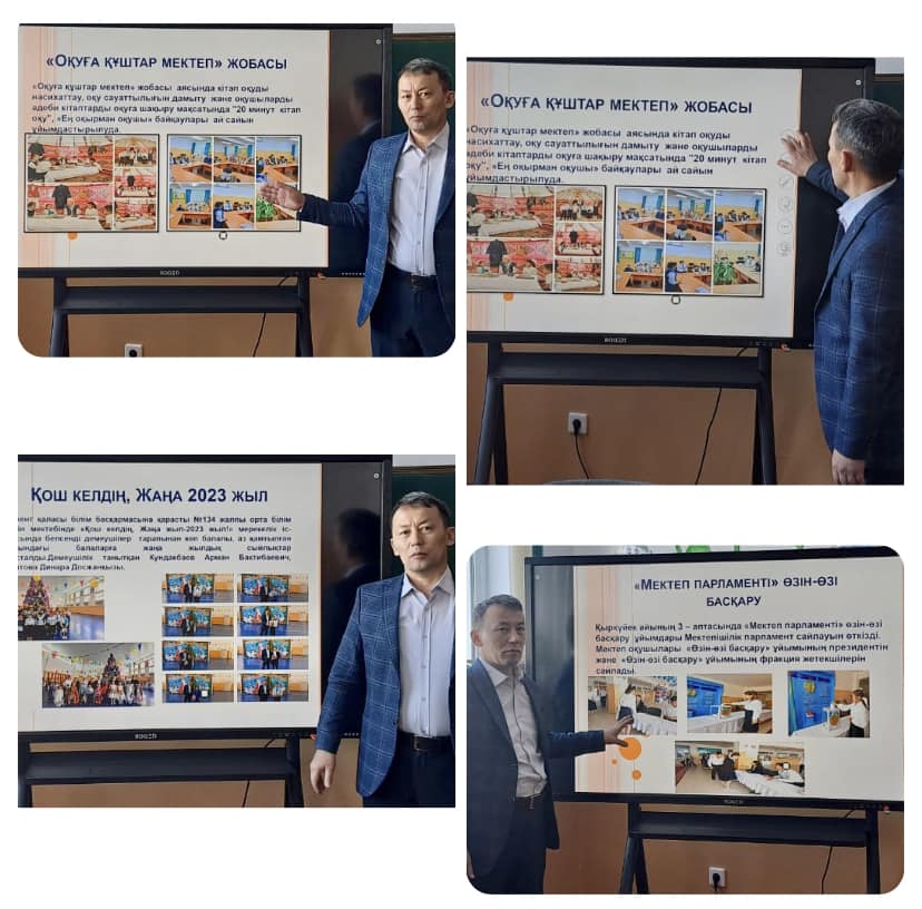 Шымкент қаласы білім басқармасына қарасты №134 жалпы орта білім беретін мектебінде 10.01.2023ж күні мектеп директоры Қасжанов Асылбек Бейсенбекұлы Қамқоршылық кеңес мүшелері алдында «2022-2023 оқу жылының І жарты жылдығында атқарылған жұмыстар бойынша» есебін берді.