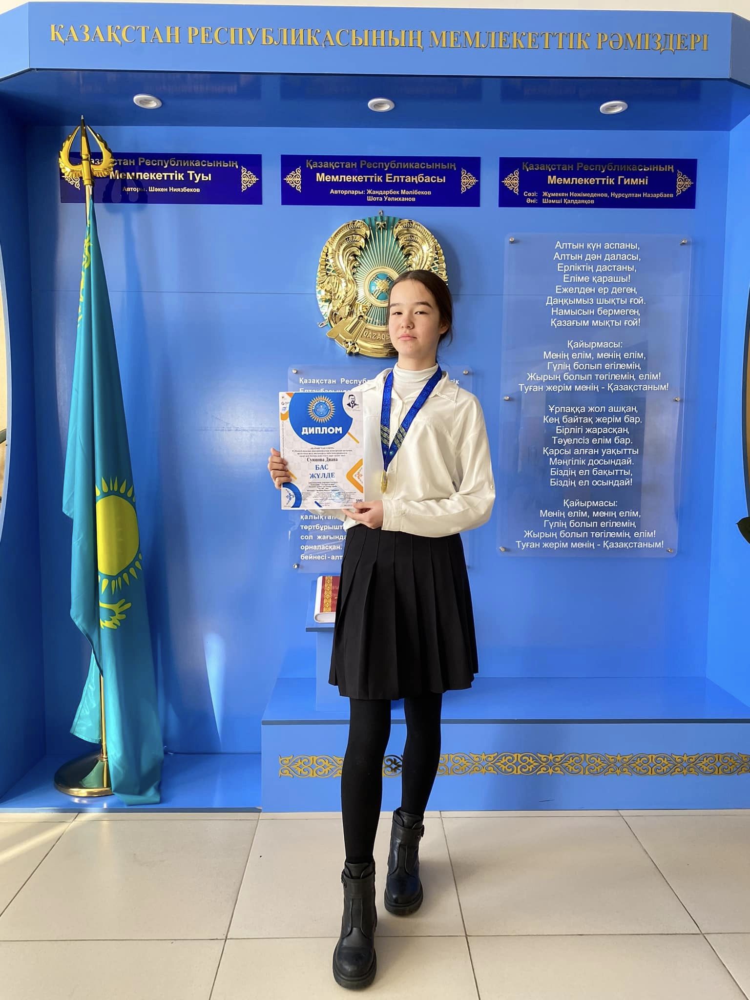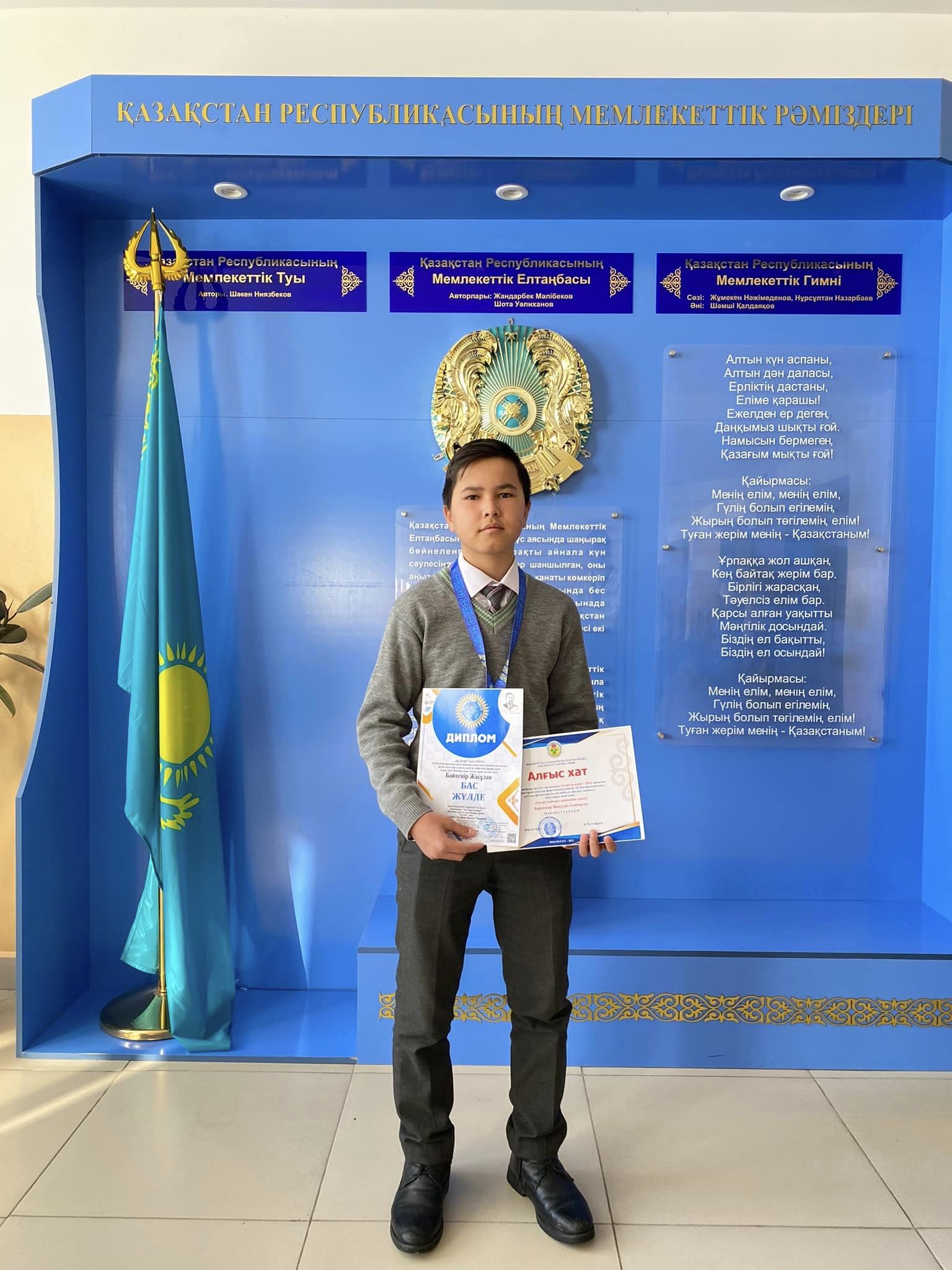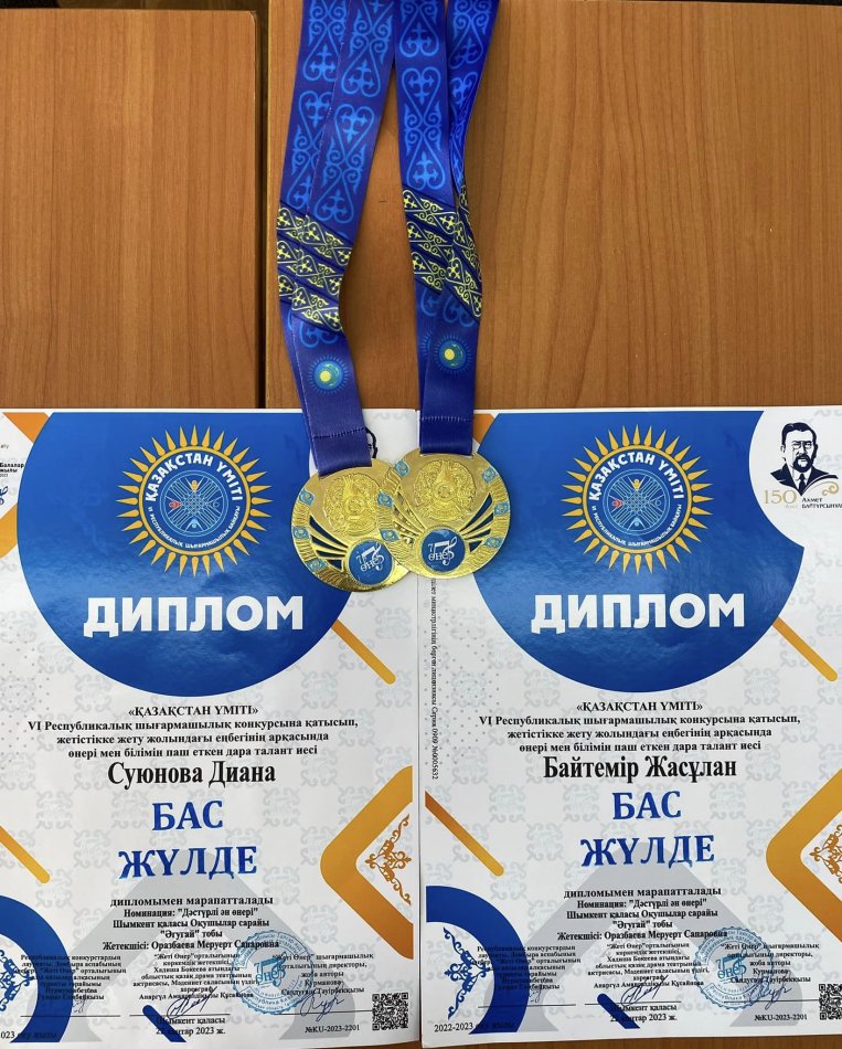 Шымкент қаласы білім беретін мектебіне қарасты №134 жалпы орта білім беретін мектебінің оқушылары «ҚАЗАҚСТАН ҮМІТІ» VI Республикалық щығармашылық конкурсына қатысып, жетістікке жету жолындағы еңбегінің арқасында өнері мен білімін паш еткен дара талант иесі Байтемір Жасұлан мен Суюнова Диана бас жүлде дипломымен марапатталды.