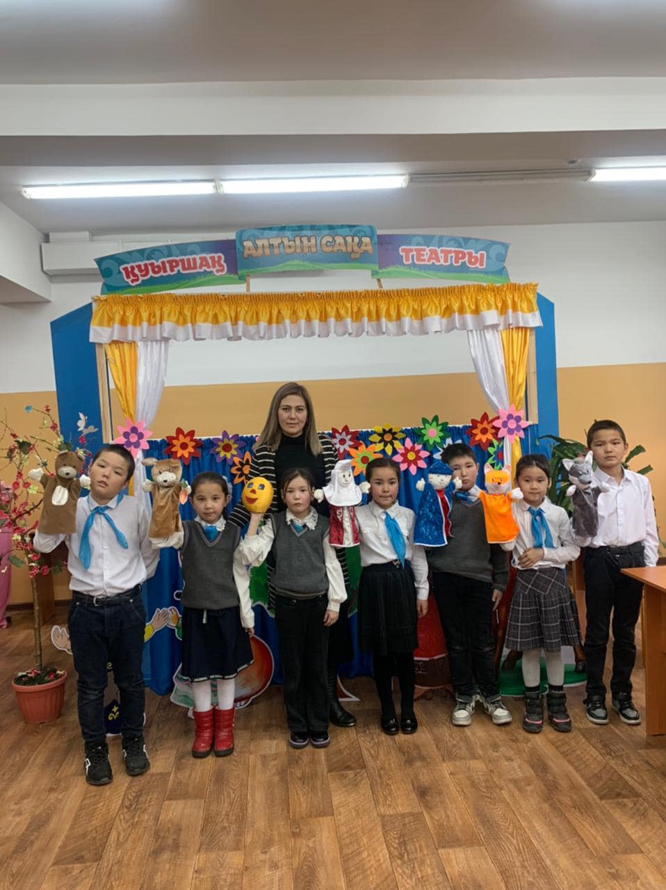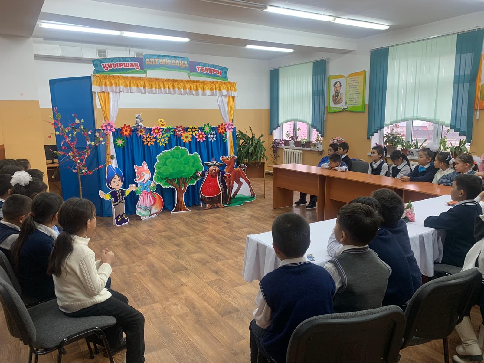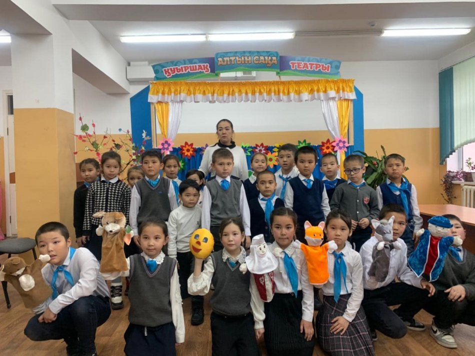 Шымкент қаласы білім басқармасына қарасты №134 жалпы орта білім беретін мектебінде 17.02.2023ж күні 3 “Б”сынып оқушылары орыс халқының “Бауырсақ” ертегі желісінен қысқаша қойылым қойды.