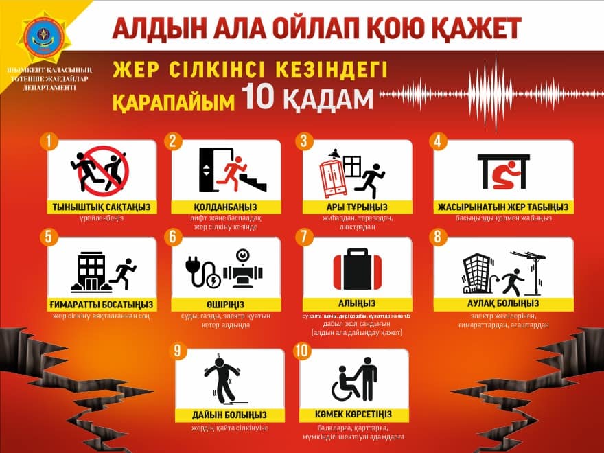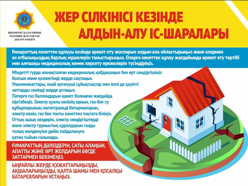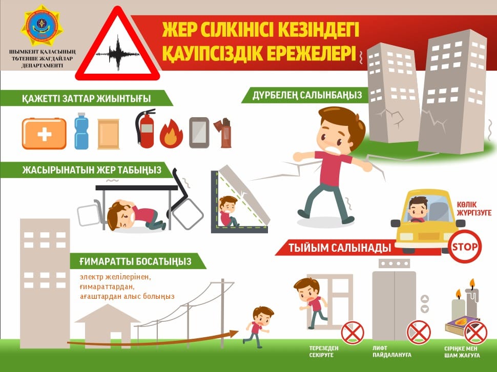 Шымкент қаласының Төтенше жағдайлар департаменті алғашқы жер асты дүмпулері кезіндегі іс-қимылдардың негізгі ережелерін назарларыңызға ұсынады.