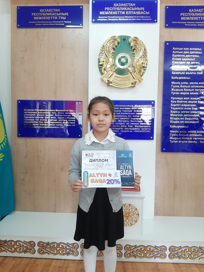 3"А"-сынып оқушысы Маликова Аружан ІІ орын иеленіп, оқу орталығының 30% жеңілдігіне ие болды.