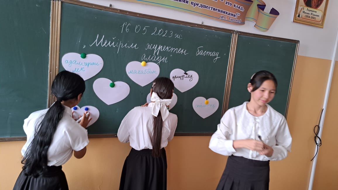 Сынып сағатында түсіндіру жұмыстары, презентациялар, деректі фильмдер көрсетіліп, түрлі тапсырмалар орындап, өз ойларын ашық білдіріп отырды.