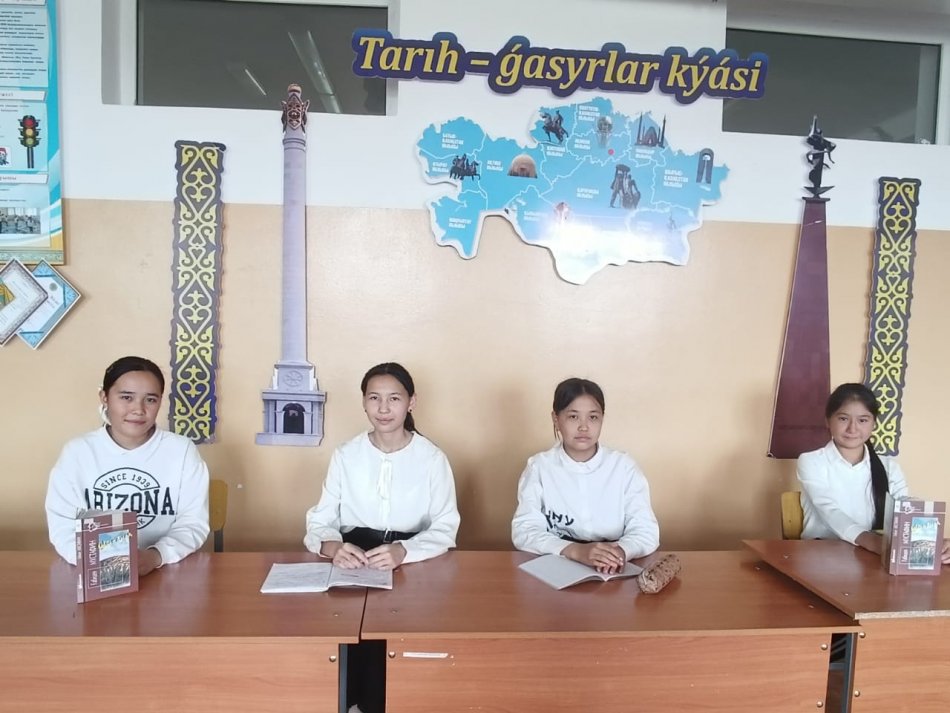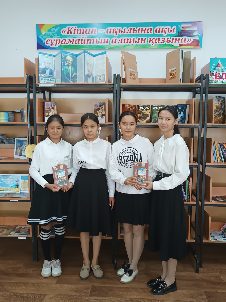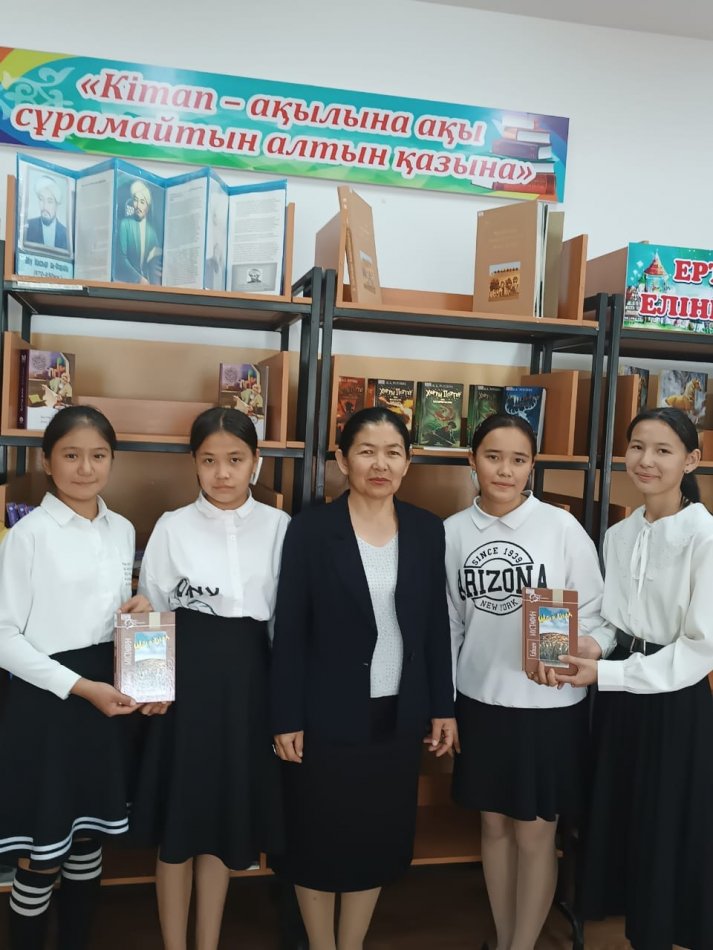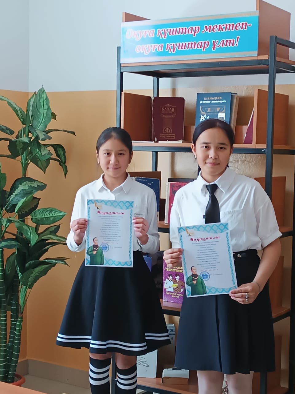 "Үздік оқырман" атанған оқушылар: Тұрсынқұл Жансая, Серікбай Аяна мақтау қағаздарымен марапатталды.