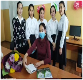 Сұхбат барысында Жәмила Бахтиярқызы өмір жолын, шығармашылығын баяндап берді. Мектебіміздегі Жас ақындар клубының мүшелері жазушымызға арнап шығарған шығармашылық туындыларын айтып, өз өнерлерін көрсетті.