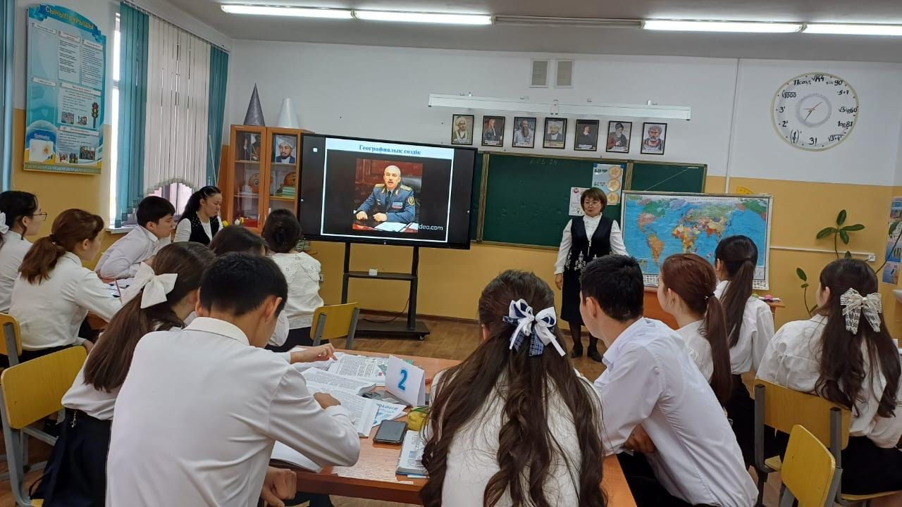 06.03.2024ж күні 10 «А» сынып оқушыларымен география пәні мұғалімі Х.Куанышеваның ұйымдастыруымен «Мемелекеттік шекаралар» тақырыбында ашық сабақ өткізілді.