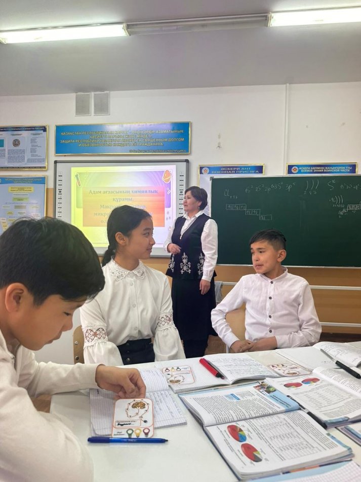 05.03.2024ж күні 9 «А» сынып оқушыларымен химия пәні мұғалімі Н.Сауранбаеваның ұйымдастыруымен «Адам ағзасындағы химиялық элементтер» тақырыбында ашық сабақ өткізілді.