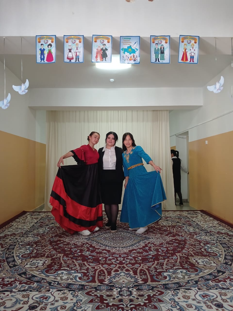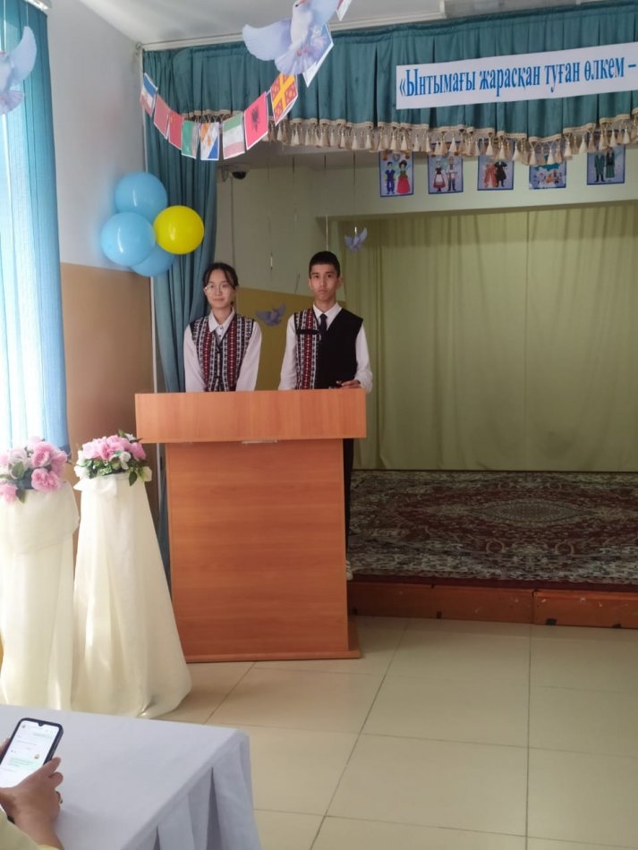 Тәрбие сағатында оқушылар достық туралы монолог айтып, ұлт өкілдерінің билерін билеп, ынтымақ, бірлік туралы өлең шумақтарын айтты.