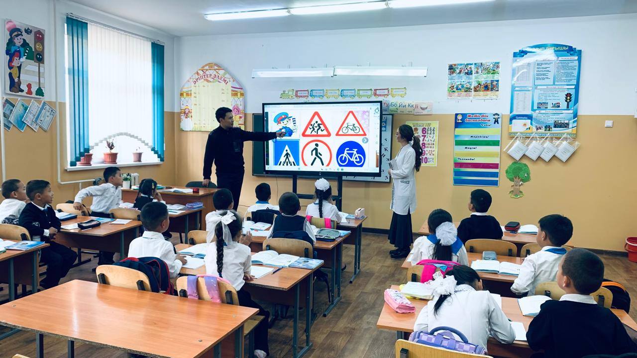 Мектебімізде «Жаяу жүргінші – заңмен қорғалған» тақырыбында қауіпсіздік сабағы өткізілді. Сабақ барысында оқушыларға жолда жүру ережелері, жаяу жүргіншілердің құқықтары мен міндеттері түсіндірілді. Сонымен қатар жол белгілері мен қауіпсіздік шаралары жөнінде бейнематериалдар көрсетіліп, талқыланды. Іс-шараның мақсаты – оқушылардың жол қозғалысы мәдениетін арттыру және өз қауіпсіздігін сақтауға жауапкершілікпен қарауға тәрбиелеу.
