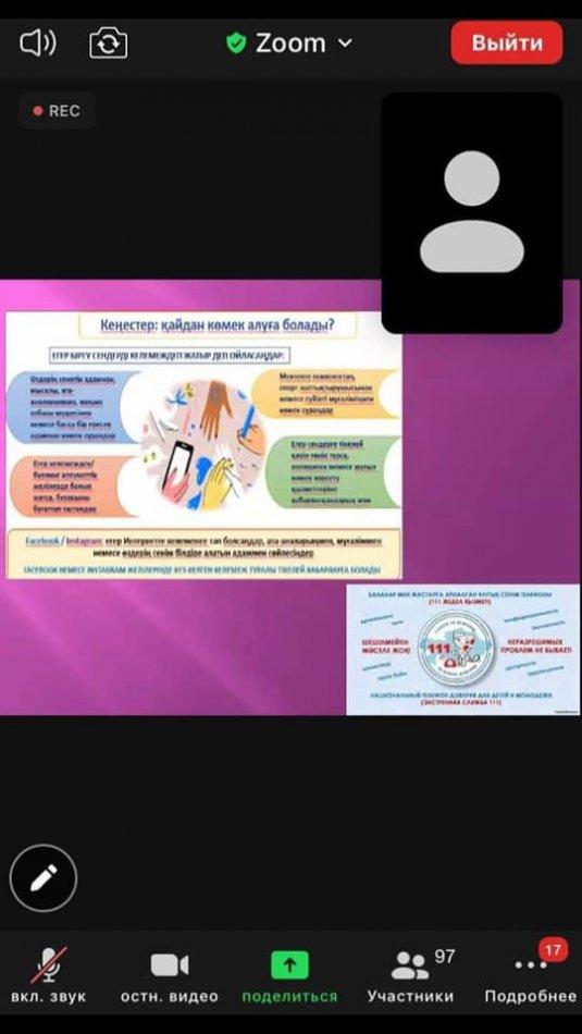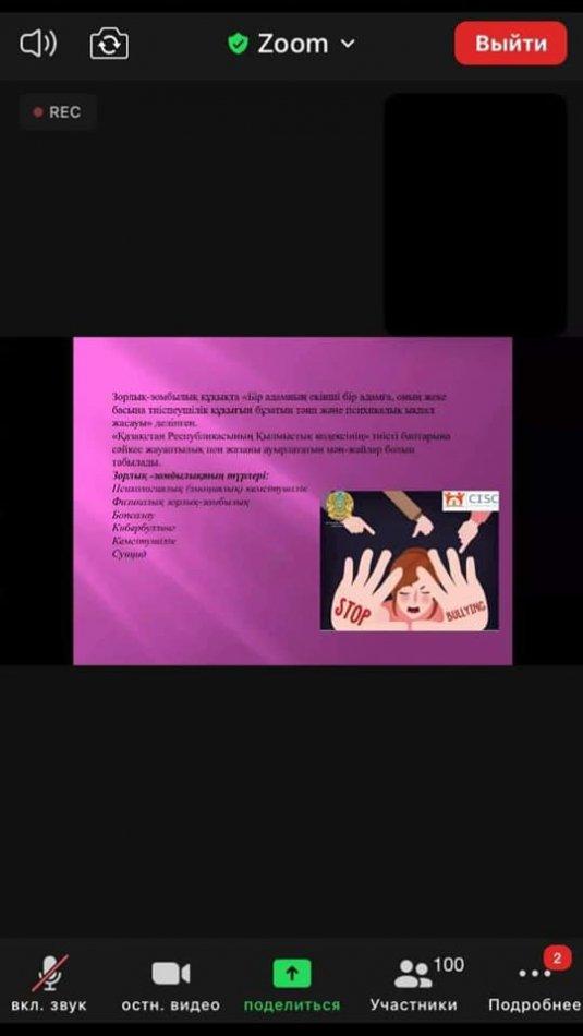 Семинар СҚО Петропавл қаласы С.Шаймерденов атындағы қалалық классикалық гимназияның педогог-психологы Каршалова Асель Сарваровнаның жүргізуімен өтті. Республикалық семинарға қатысушы мектеп парламенті мен оның мүшелері жиында буллингтің түрлері, оларға қарсы әрекеттер және алдын алу жолдары туралы ақпараттармен танысты. Қатысушылар "Әрбір адам буллингті басынан кешуі керек пе?" деген сұрақ төңірегінде талқылау жұмыстарын жүргізді. Мектеп парламентінің мүшелеріне буллингке тап болған балаға қандай қолдау көрсету керек екендігі түсіндірілді. Семинарға қатысушылар көптеген ақпараттар мен мәліметтер ала алды.