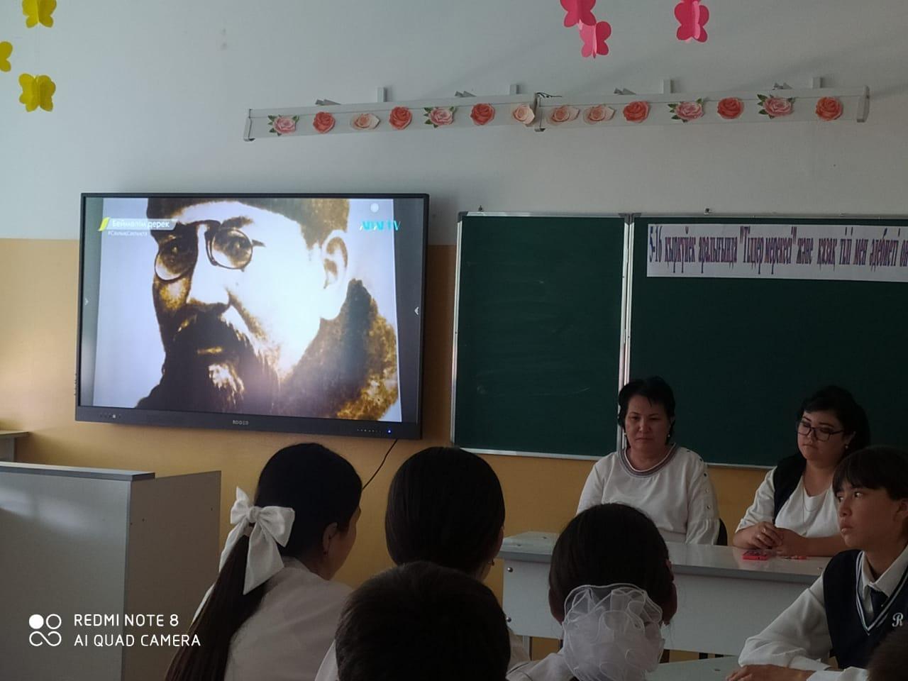 Іс-шараның мақсаты: Оқушылардың өз ана тіліне деген құрмет сенімін арттыру, тіл мәртебесін көтеру, таза сөйлеуге үйрету, еліне деген сүйіспеншілігін ояту. Ана тіліміздің тұғыры мықты болуына негіз қалаған бабаларымыздың өсиетін ұран ету, тіл білімінің негізін қалаған тұлғаларды дәріптеу, қазақ тілінің мәртебесін көтеру. Іс-шара барысында: балалар өз жас ерекшеліктеріне сай өлең шумақтары мен қанатты сөздерді жатқа айтып, Ахмет Байтұрсынов туралы керемет видеороликтерді тамашалады.https://www.facebook.com/100042351700336/videos/388102263459968/