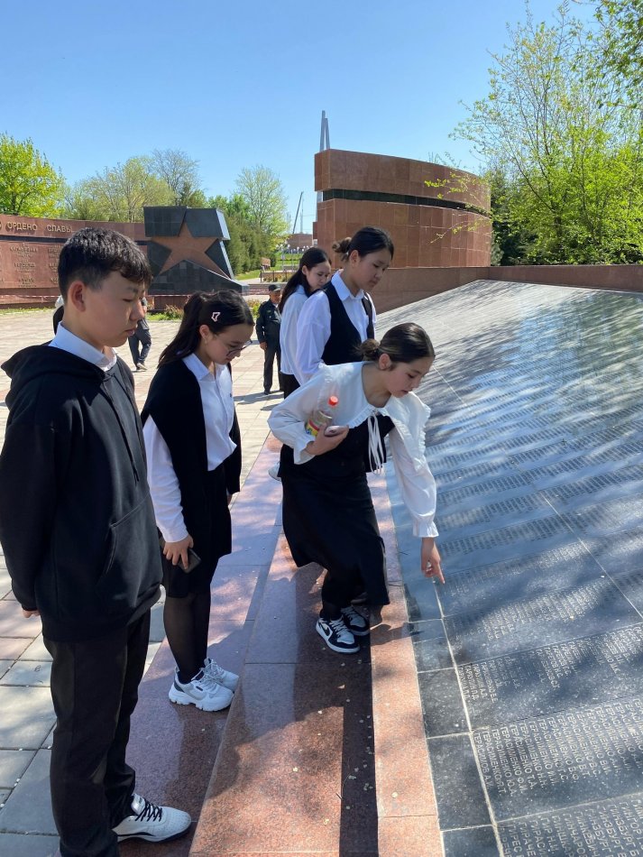 Шымкент каласы Әдістемелік орталығы Білім басқармасының 2025 жылғы 14 ақпандағы №10-08-07/083 хатының негізінде, Шымкент қаласының әкімі Ғ. Сыздықбековпен бекітілген 2025 жылға арналған Ұлы Отан соғысындағы Жеңістің 80 жылдығына дайындалу және оны мерекелеу жөніндегі "Ұлы Жеңіс: Ерлікке тағзым, ұрпаққа үлгі " іс-шара жоспарына сай мектебіміздің АӘД пәні мұғалімі Қ. Пазыловтың жұмыс жоспарына сәйкес және кәсіптік бағдар беруші маман» М. Адилбекова 11.04.2025 жылы: 9-11 сынып оқушыларымен Ұлы Отан соғысының батырларын еске алып, тағзым ету мақсатында экскурсия ұйымдастырылды.