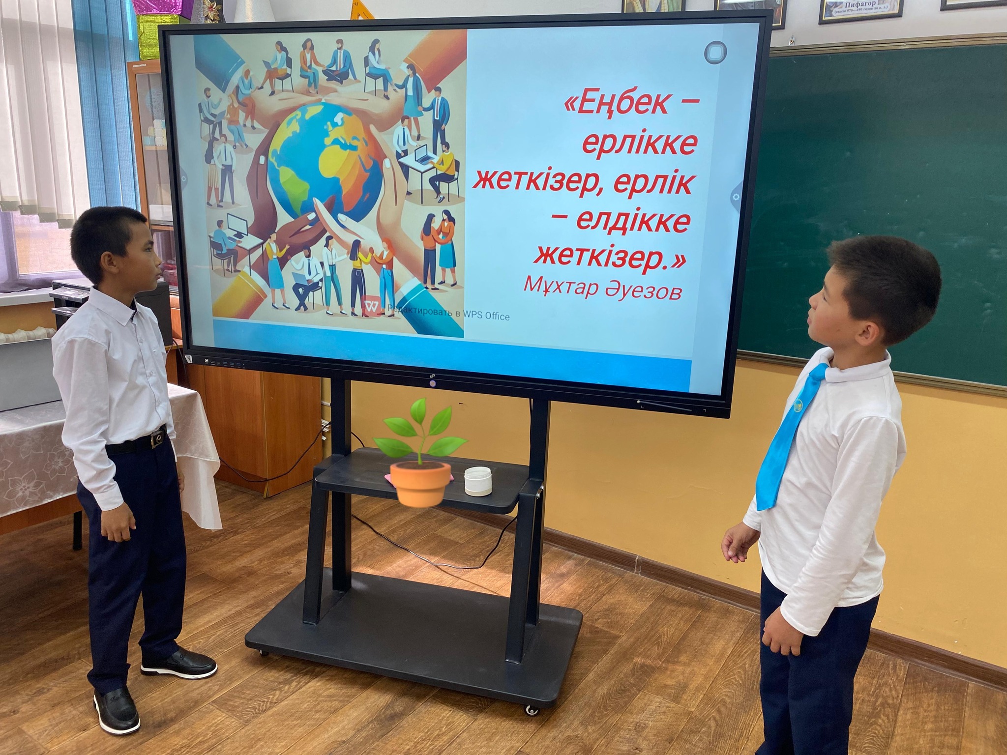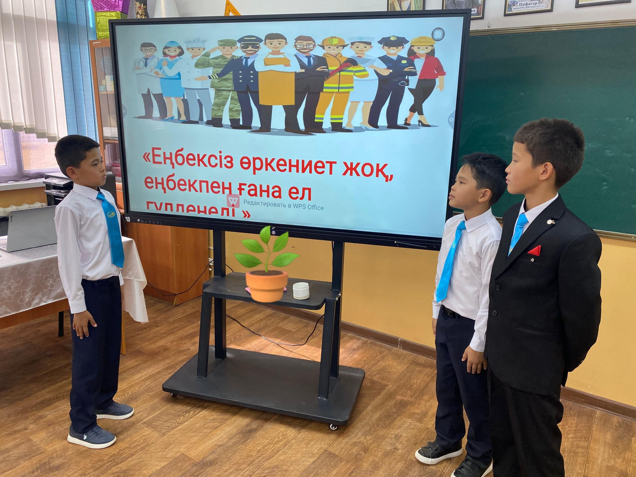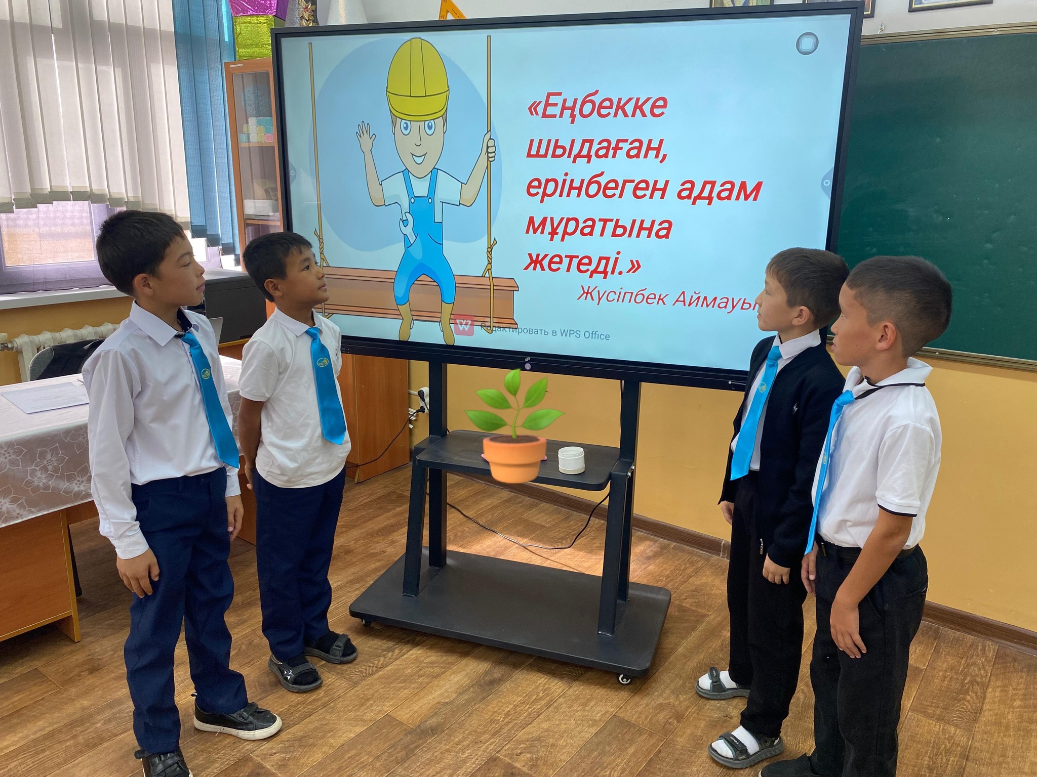 -Оқушылар, сендер бүгінгі еңбектерің — білім алу. Осы білімге деген талпыныс ертеңгі табысты болашақтың негізін қалайды. Бүгінгі сабаққа, өмірге деген ықыласың ертеңгі бақытың болады.