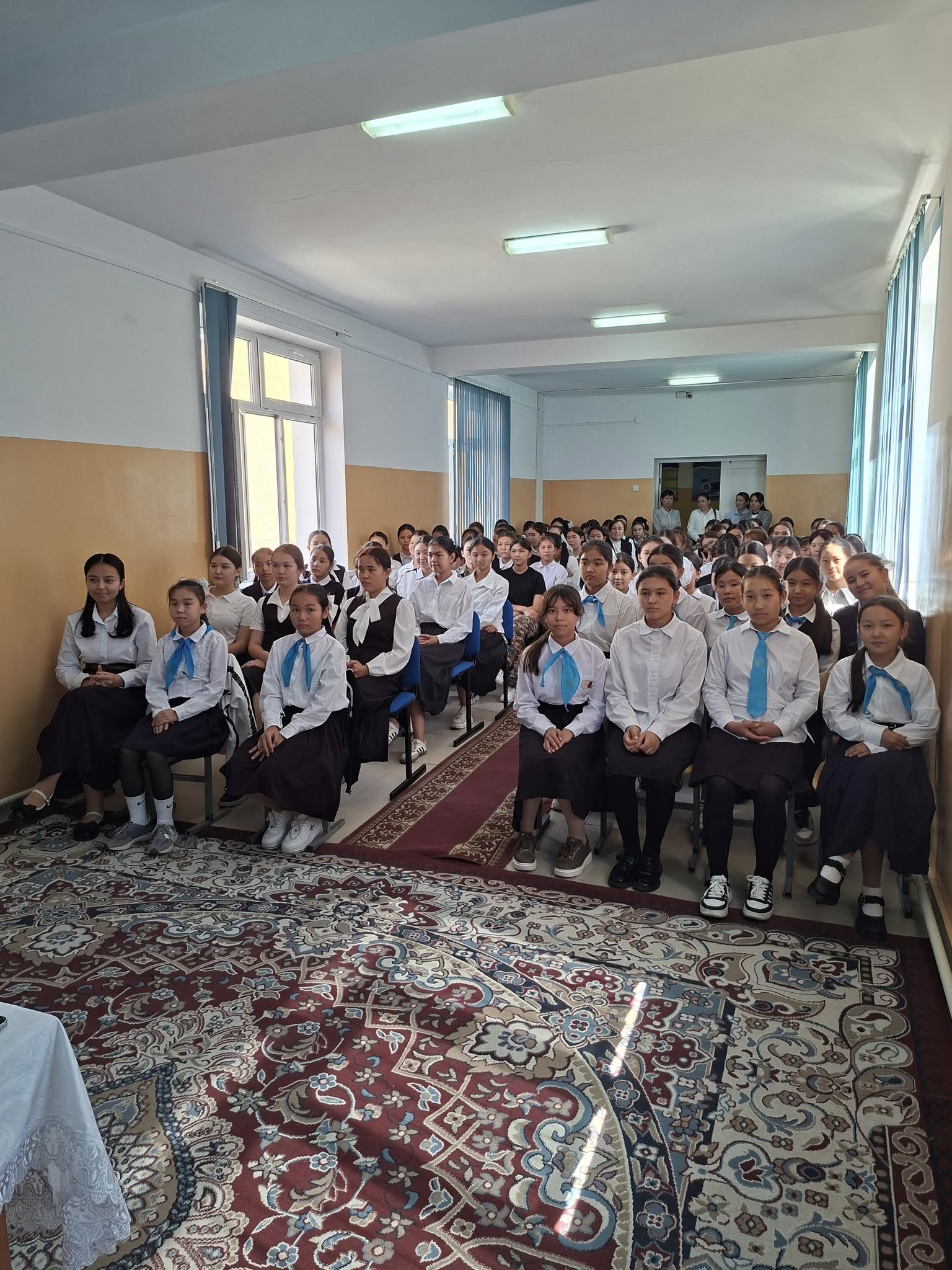 Шымкент қаласы білім басқармасына қарасты № 134 жалпы орта білім беретін мектебінде 23.09.2025 ж. күні мектепішілік қыздар жиналысы өткізілді. Жиналысқа қатысқандар: ДТЖЖО Ж.Жаштаева, қыздар ұйымының төрайымы Н. Сауранбаева, мектеп психологы, әлеуметтік педагог, мектеп медбикесі, сынып жетекшілер, пән мүғалімдері. Жиналыста мектептің iшкi тәртіп ережелері, міндетті мектеп формасының талапқа сай болуы, қыздардың сырт бейнесі, жеке бас гигиенасы, құқықбұзушылық пен буллинг және кибербуллингтің алдын- алу бойынша әңгіме жүргізілді. Қыздар жиналысына 7-11 сыныптар бойынша барлық қыз балалар қамтылды.
