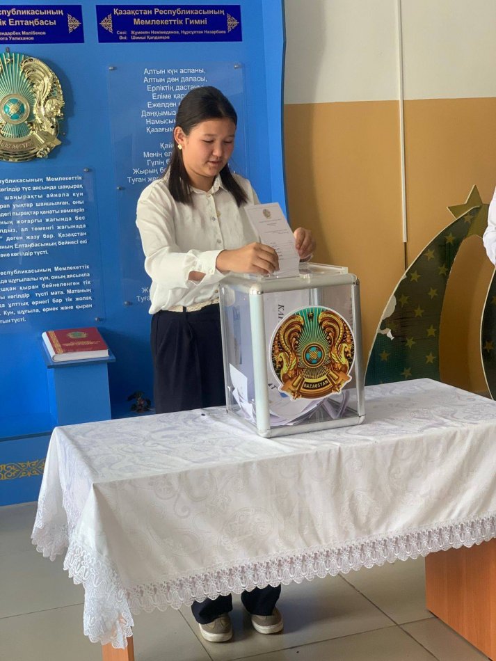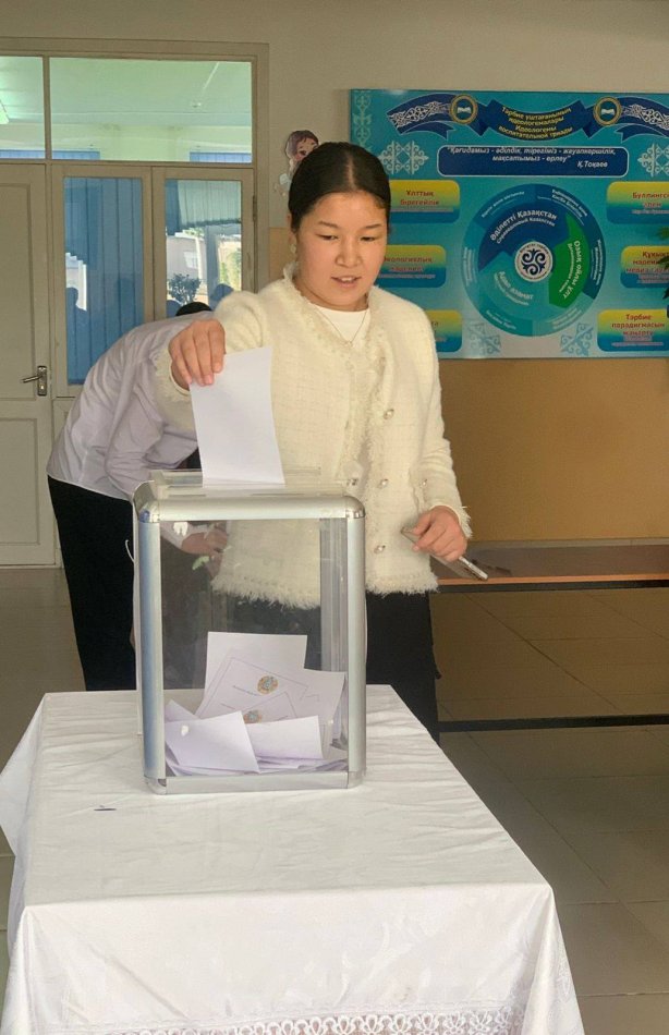 Алғашқы қадамымыз 09 қазан күні "Президенттікке сайлау" өткізілді. 135 оқушы дауыс беріп, нәтижесінде 9 "А" сынып оқушысы Әлжан Аружан сайланды.