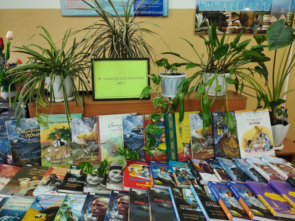 Мектеп кітапханасы «Балалар кітапханасы» бағдарламасы аясында оқырман назарына «Мәңгілік елге-кітаппен бірге» тақырыбында танымдық сағатын өткізді.