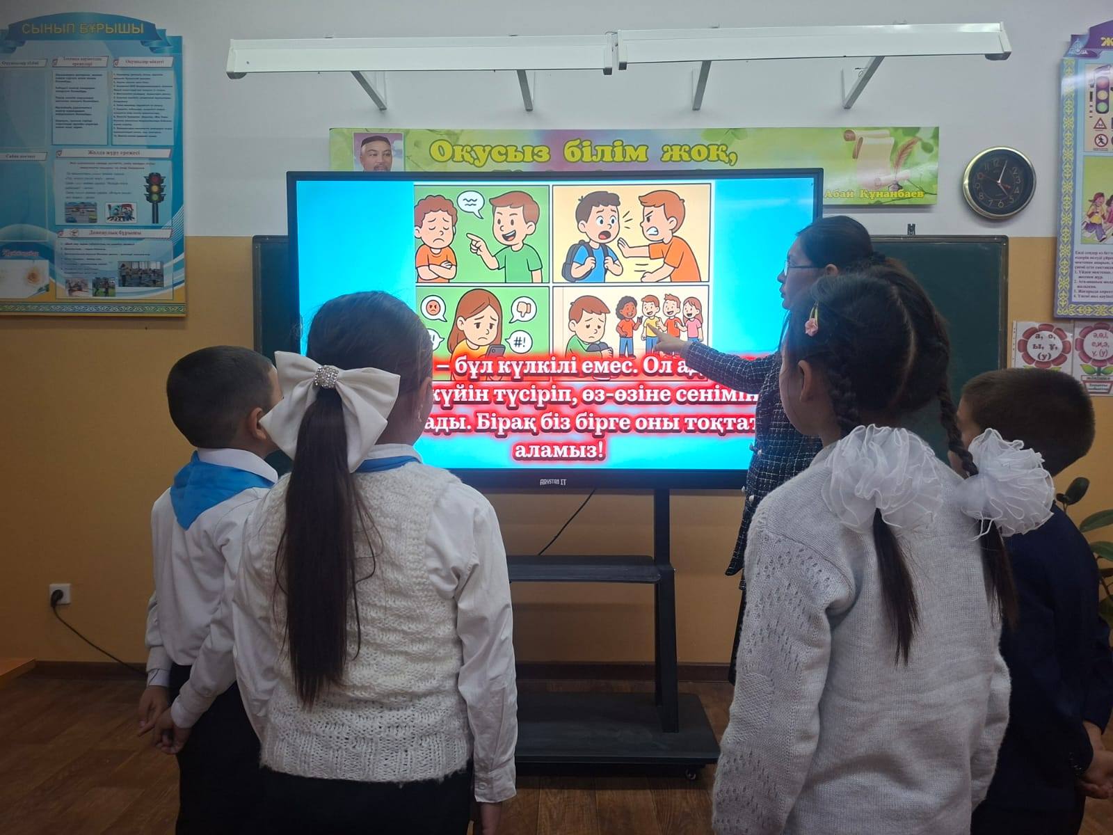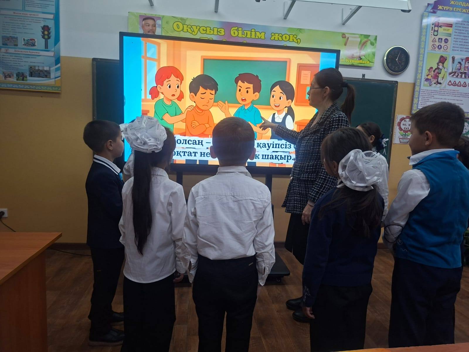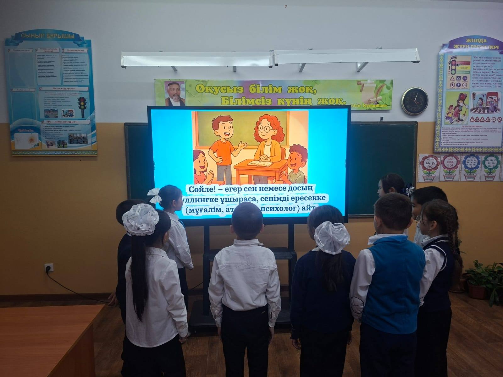 25.11.2025ж күні Қазақстан Республикасының «Білім туралы» заңы, ҚР Үкіметінің 2023 жылғы 31 тамыздағы №748 қаулысы, ҚР Оқу-ағарту министрінің 2022 жылғы 21 желтоқсандағы №506 бұйрығы негізінде «ДосболLIKE» бағдарламасын іске асыру мақсатында «Біздің әрқайсымыз ерекше» тақырыбында 3 «А» сынып жетекшісі Аренова Кулайшаның ұйымдастыруымен тренинг өткізілді. Мақсаты: оқушылар өздерінің бірегейлігін сезіну, өзін-өзі оң бағалау, қызығушылықтарын, қабілеттерін анықтауына ықпал ету.