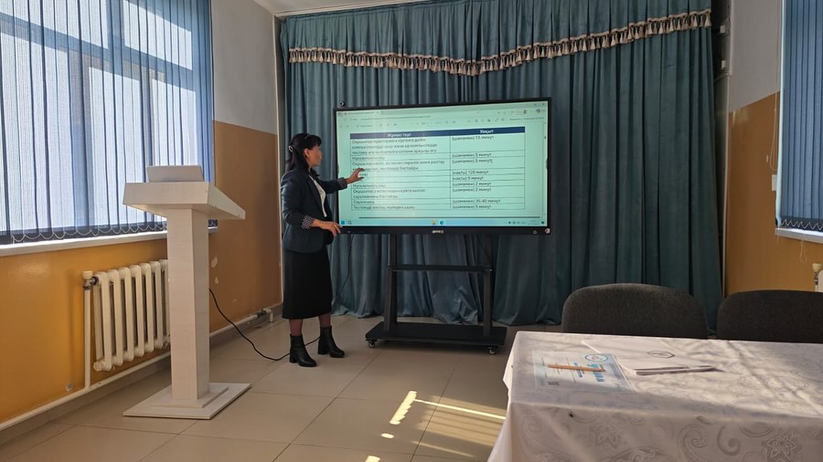 «Мектептерге арналған PISA» бойынша нұсқаулықтармен оқу - әдістемелік жұмыс жөніндегі орынбасары Ф.К.Режаметова таныстырды.