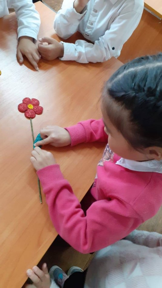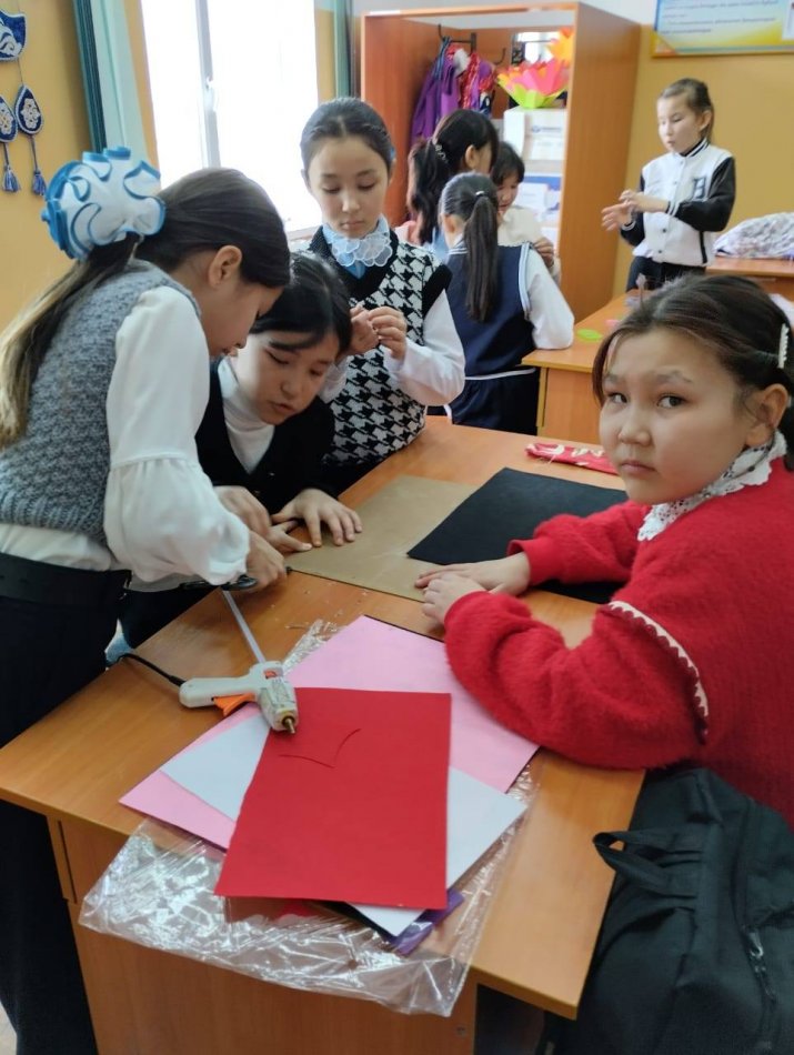 Сабақ барысында оқушылар қолөнер бұйымдарын жасап, бірлесіп жұмыс істеу арқылы жауапкершілік пен тәртіптің маңызын түсінді.