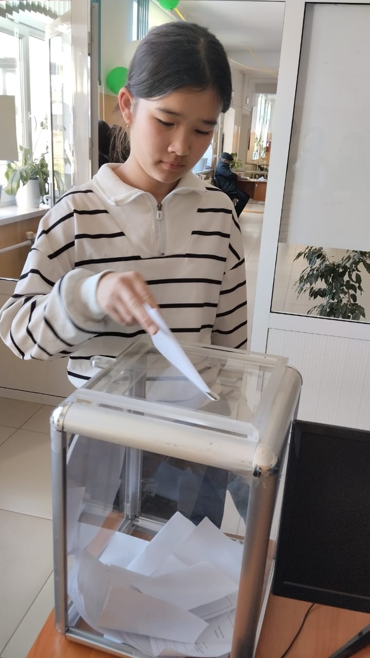 Шешуші кезең, 19.10.2024ж күні мектепте өткен сайлау күні оқушыларға бюллетень берілді. Оқушылар өз таңдауларын жасады. Дауыс беріп болған соң, комиссия мүшелері дауыстарды санады.