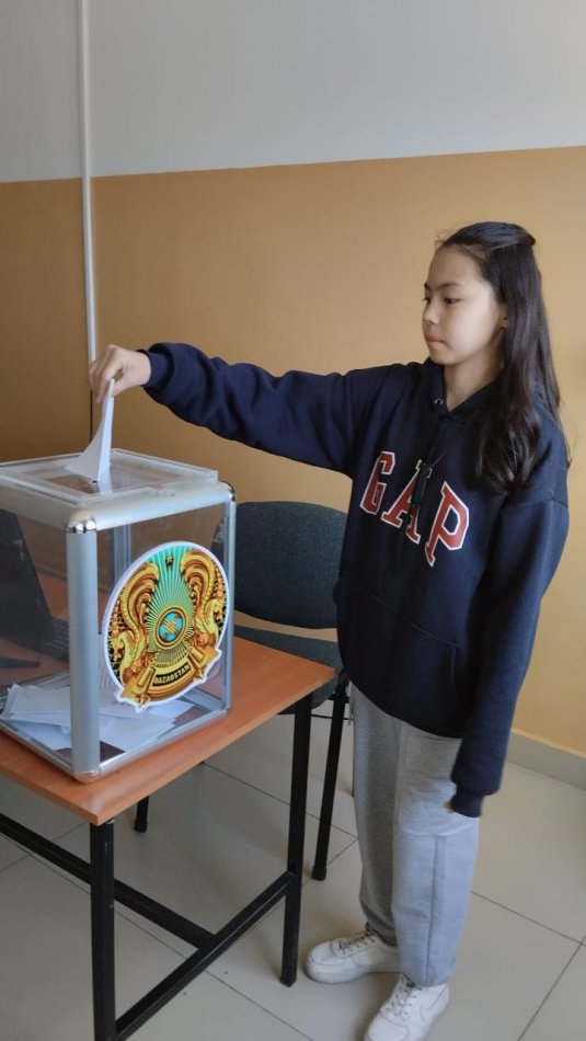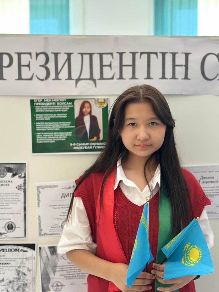 Оқушылардың жақтап дауыс беру нәтижесінде 9«Ә» сынып оқушысы Медеубай Гүлнұр "Мектеп парламент президенті" болып сайланды.
