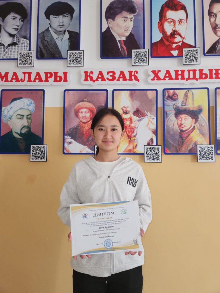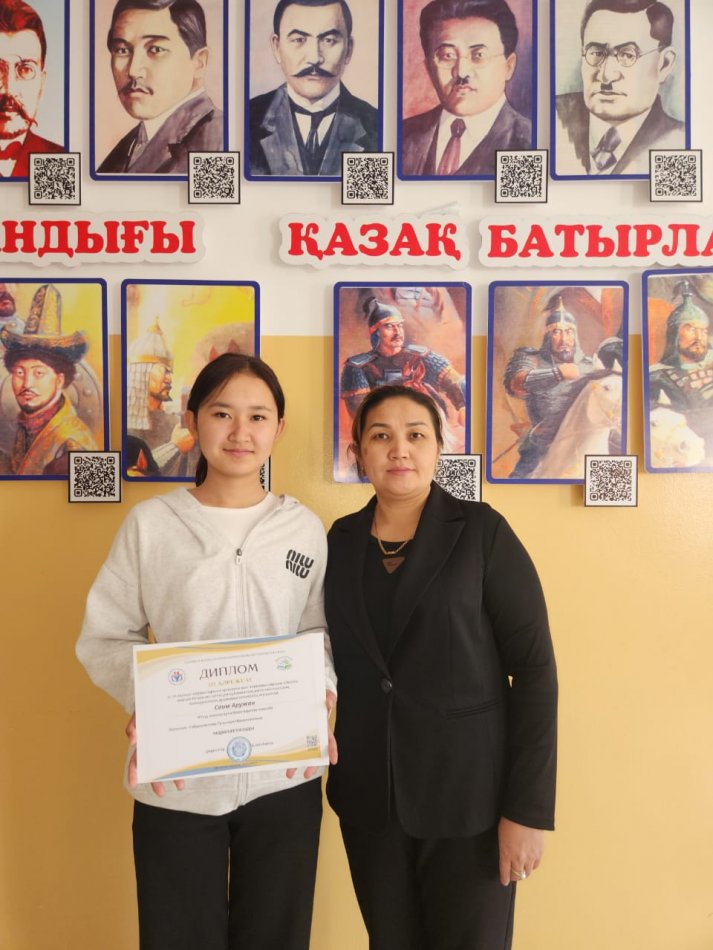 ''Жасампаздар менің өлкемнің тұлғалары мен батырлары'' номинациясы бойынша 10''А'' сынып оқушысы Саим Аружан қатысып жүлделі ІІІ орынға ие болды.