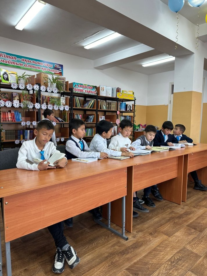 Шымкент қаласының білім басқармасына қарасты №134жалпы орта білім беретін мектептің. 4 «Ә» сынып оқушылары «Оқуға құштар мектеп» жобасы аясында «20 минут кітап оқимыз» сынып болып кітап оқу іс-шарасында кітапханаға келіп өздеріне ұнаған кітаптарын алып окуда оқыған кітаптарының мазмұнымен бөлісті.