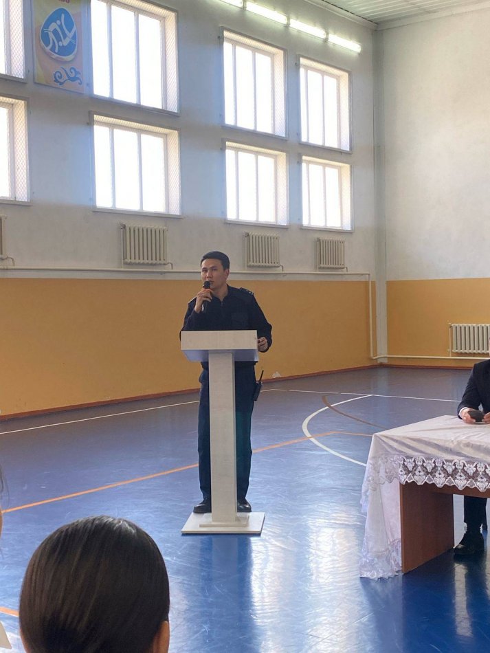1. Мектеп директоры А.Б.Касжанов сөз алып, күн тәртібіндегі бірінші мәселе бойынша оқушыларды хабардар етіп, ол өз сөзінде кәмелетке толмаған жасөспірімдердің құқықбұзушылық іс-әрекеттерінің алдын-алу, зорлық-зомбылық болдырмау туралы түсіндірме жұмыстарын жүргізу, оқиға орын алған жағдайда мектеп психологына, полицияға хабарласу керек екендігін ескертті.