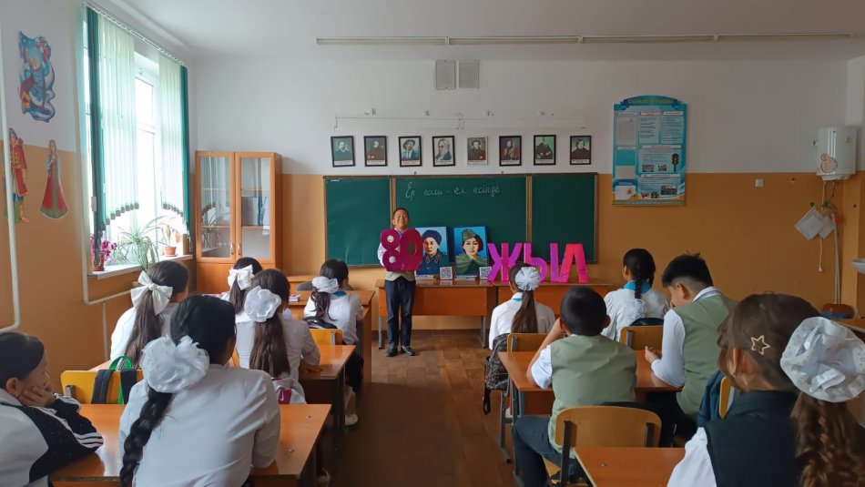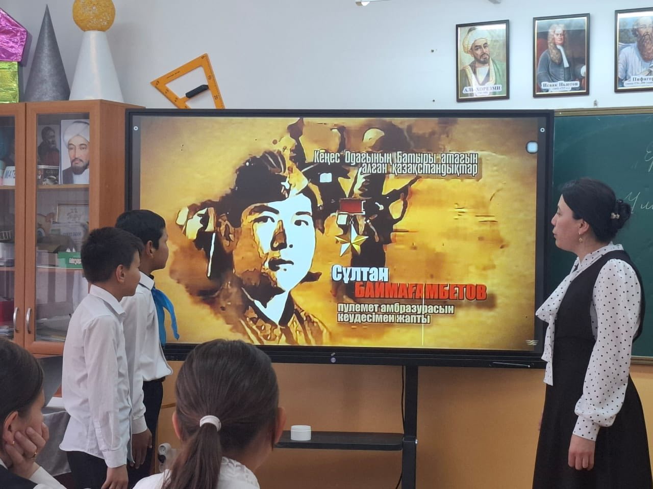 Шымкент қаласы білім басқармасына қарасты №134 жалпы орта білім беретін мектебінде 21.04.2025 Ұлы Отан соғысындағы Жеңістің 80 жылдығына орай мектеп оқушыларымен "Ер есімі-ел есінде!" тақырыбында сынып тәрбие сағаттары ұйымдастырылды.