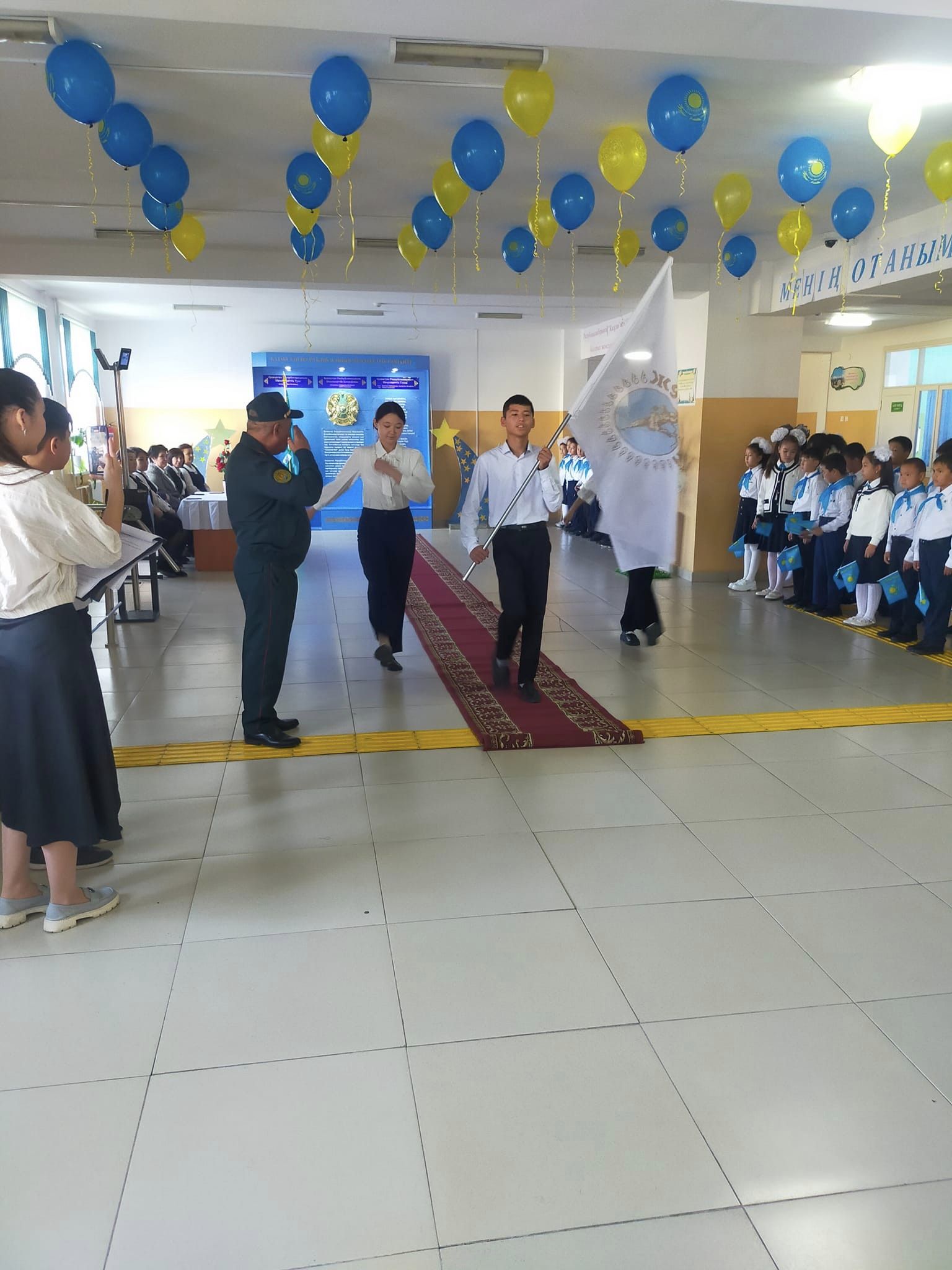 Өскелең жас ұрпақтың бойында патриоттық білім мен өзін-өзі жетілдіруге деген құштарлық, беріктік, Отан тарихына, Тәуелсіз Қазақстанның бүгіні мен болашағына деген жауапкершілікті қалыптастыру мақсатында ұйымдастырылған іс- шарада мектеп директоры А.Б.Қасжанов оқушыларды құттықтап, ізгі тілектерін білдірді.