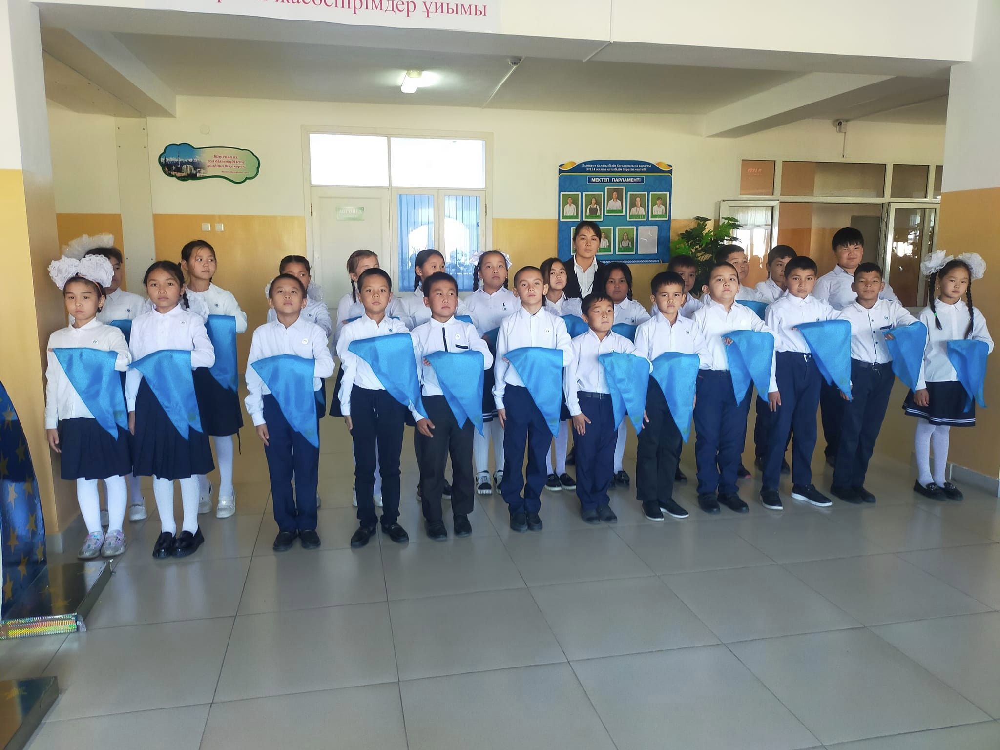 Шымкент қаласы білім басқармасына қарасты №134 жалпы орта білім беретін мектебінде 25 қазан- Республика күніне орай Республикалық бірыңғай «Жас Ұлан» балалар мен жасөспірімдер ұйымына мүшелікке қабылдау салтанатты жиыны өтті.