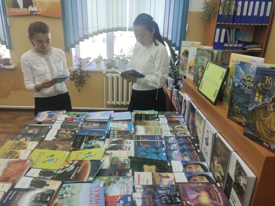 «Кітаптар әлемі» тақырыбында жаңа әдебиеттерді оқырмандарға таныстыру, насихаттау, кітап оқу мәдениетіне тәрбиелеу мақсатында әдебиеттер көрмесін ұйымдастырып, жаңа кітаптармен таныстыру сағатын өткізді.