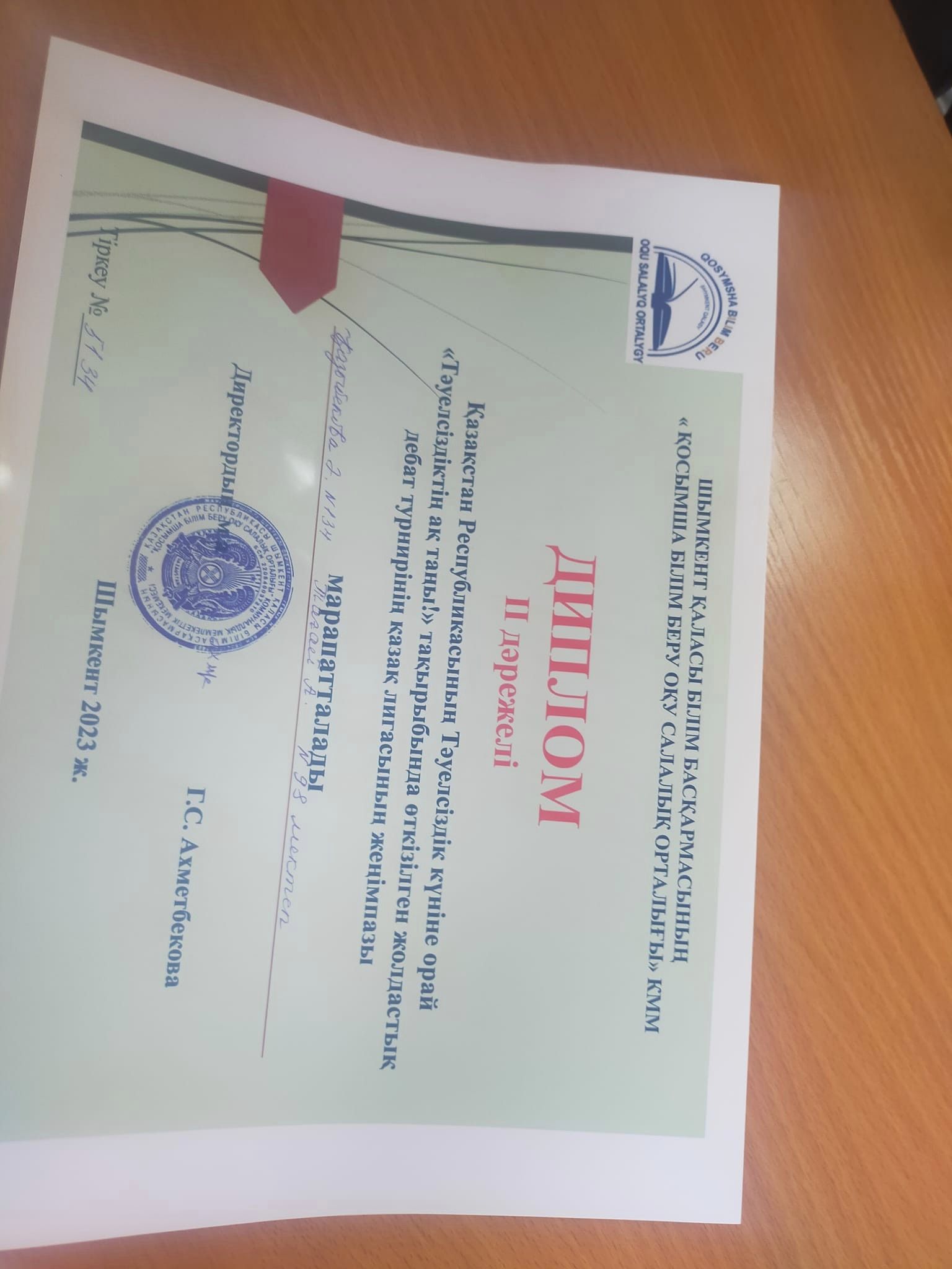 №101 А.Ақбаев атындағы мектеп базасында “Өңірлік дебат лигасы жобасы негізінде Тәуелсіздік күніне орай өткізілген “Тәуелсіздіктің ақ таңы!” атты жолдастық кездесуге мектебіміздің дебат клубының оқушылары қатысты. Қатысушы оқушыларымыз А.Қазыбекова, Н. Нұржау өздерінің ой ұшқырлығын, белсенділіктерін танытты. Дебат тартысты әрі қызықты өтті. Оқушыларымыз 2-орын иеленіп марапатталды.