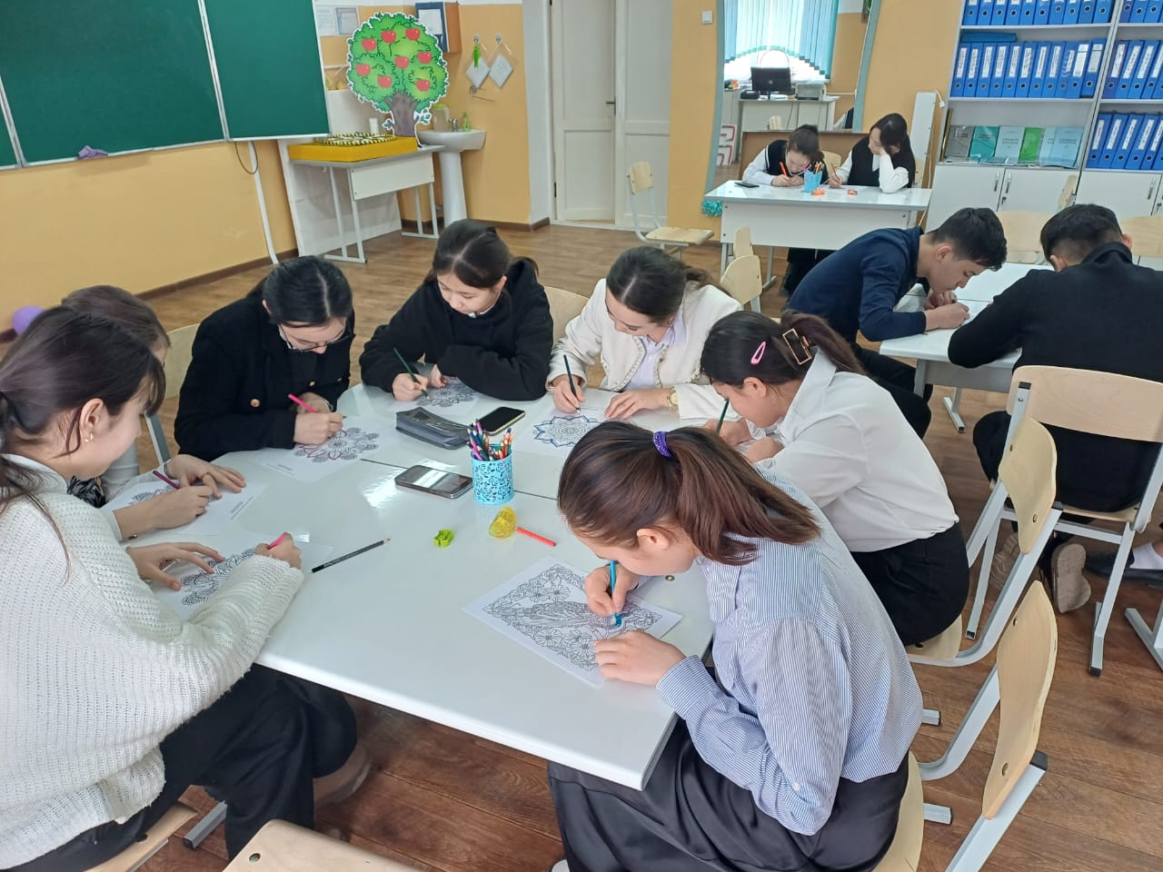 3. " Мандала терапиясы" 10 сынып оқушыларына өтілді.