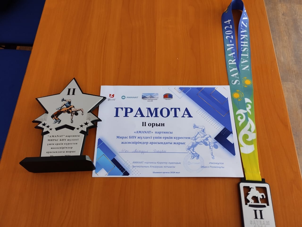 Шымкент қаласы білім басқармасына қарасты √134жалпы орта білім беретін мектебінде 6 "Ә"-сынып оқушысы Айтқұл Бекарыс Аманат партиясы ұйымдастырған Мирас БПҰ жүлдесі үшін еркін күрестен жасөспірімдер арасындағы жарысына қатысып II-орын алғаны үшін дипломмен марапатталады. Мектебіміздің директоры Касжанов Асылбек Бейсенбекұлы Бекарысты шын жүректен құттықтады. Алар асуларың көп болсын! Биік белестерді бағындыра бер.