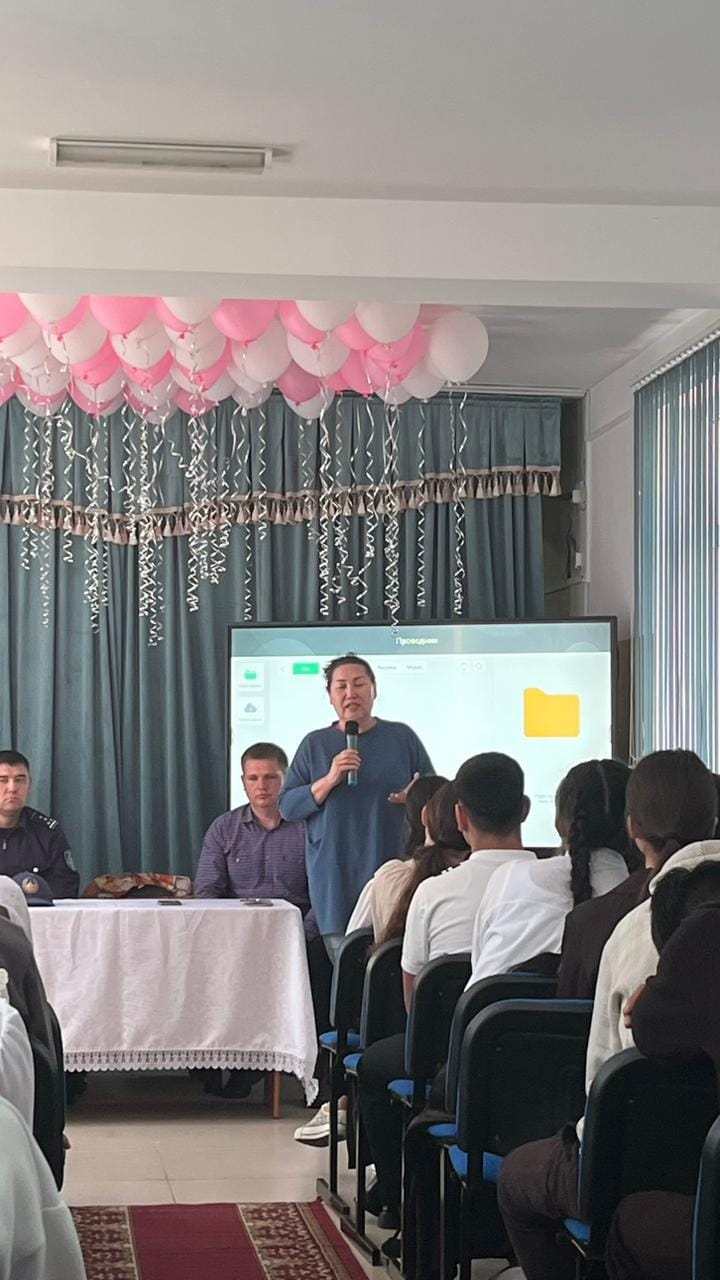 №134 жалпы орта білім беретін мектебінде 4.04.2024 күні «Кәмелетке толмағандар арасында құқық бұзушылыққа, нашақорлыққа, суицидке жол бермеу, қыздар арасындағы ерте жүктіліктің, адам саудасы, тұрмыстық зорлық-зомбылық профилактикасы мен кереғар діни ағымдар, сыбайлас жемқорлыққа қарсы іс-қимыл тәсілдері бойынша түсіндіру жұмыстарын жүргізу ,жасөспірімдердің спортқа ,өнерге, мәдениетке қызығушылығын арттыру мақсатында спорт шеберлерімен, өнер, мәдениет майталмандарымен 8-11 сынып оқушыларының арасында кездесу болып өтті. Кездесуге Шымкент қаласы Еңбекші аудан әкімі аппаратының бас маманы Ирисбекова Роза Махамадазимовна, Шымкент қаласы Дін істері басқармасы «Дін мәселелерін зерттеу» орталығының теолог маманы Садык Диана Нұржанқызы, Қалалық психикалық оңалту орталығының дәрігері, психиатр- нарколог Ермаханова Перизат Умирзаковна, Шымкент қаласы № 14 спорт мектебінің әдіскері Шкарупа Григорий Иванович, Мектеп инспекторы полиция капитаны Е.Н. Утегенов , мектеп директоры А.Б.Касжанов, директордың тәрбие ісі жөніндегі орынбасарлары А.Елубаев, Ж.Жаштаева, 8 -11 сынып жетекшілер, оқушылар қатысты.