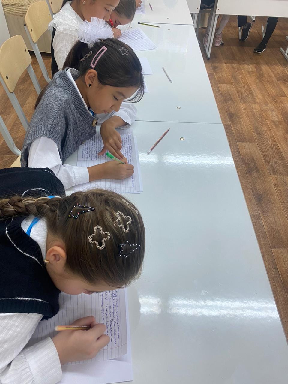 Шығармашылық сайысқа 6 «А», «Ә» және 5 «А», «Ә» сыныптар оқушылары қатысты. Оқушылардың шығармалары тексеріліп, жүлделі орын алған оқушылар марапат қағаздарымен марапатталды.