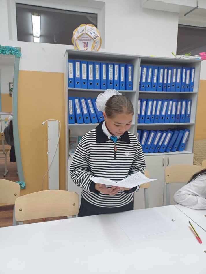 №134 жалпы орта білім беретін мектептің педагог-психологы Г.Бишаева мен әлеуметтік педагог Д.Жақсыбай «Бала құқығы-басты құндылық» айлық іс-шара жоспарына сәйкес қазан айының 11.10.2024ж. күні 5-6 сыныптар арасында «Рухани бай елдің ұрпағымын» тақырыбында авторлық шығармалар сайысын ұйымдастырып өткізді.