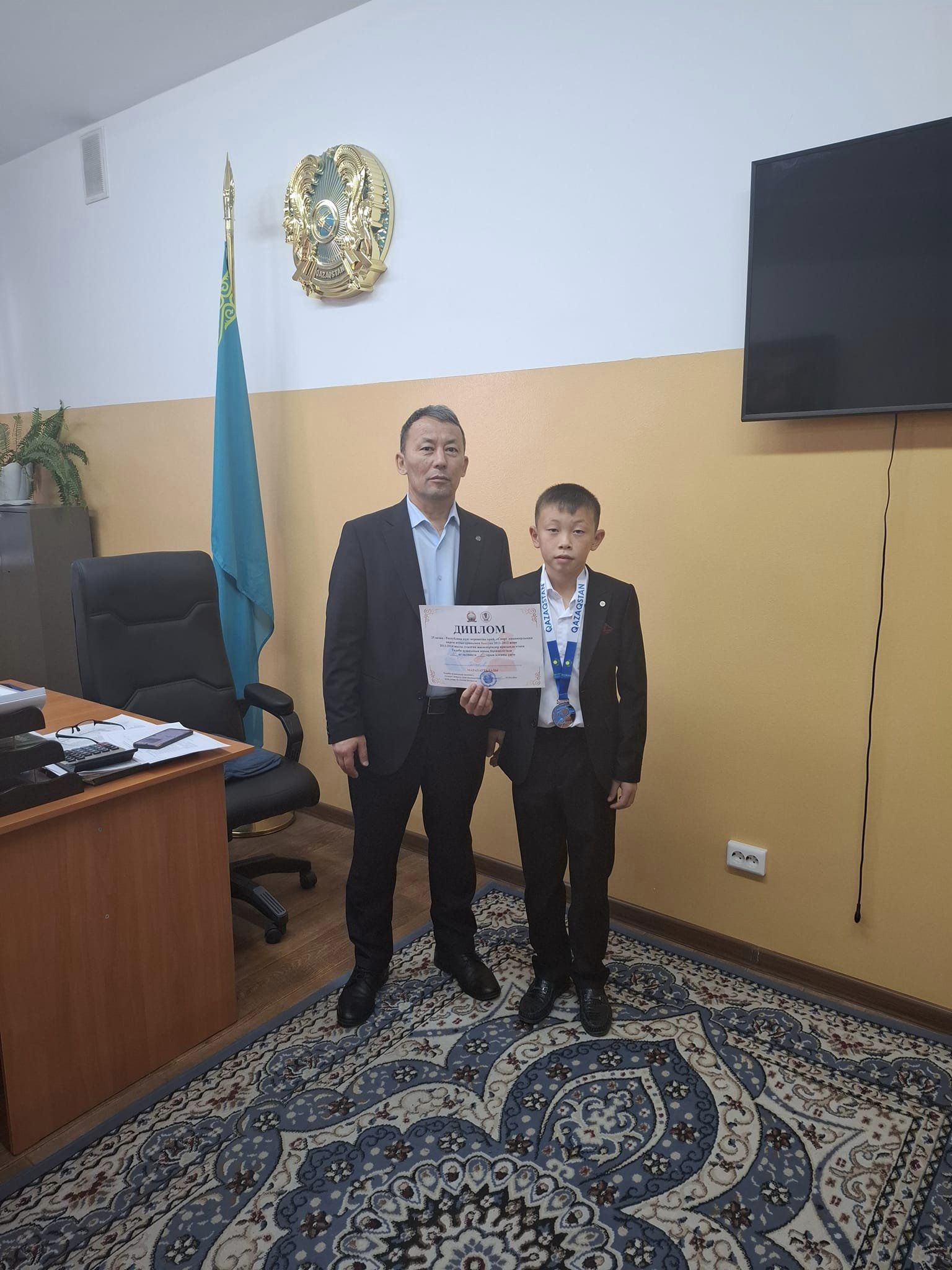 Шымкент қаласы білім басқармасына қарасты 25 қазан-Республика күні мерекесіне орай "Спирт нашақорлыққа қарсы" атты ұранымен бокстан 2011-2012 және 2013-2014 жылы туылған жасөспірімдер арасында өткен Төлеби ауданының ашық біріншілігінде 30кг салмақта II-орын алғаны үшін ТҰРСЫН ЕЛДОС марапатталады. Жеңісің құтты болсын. Биіктен көріне бер! Әрқашан алға қарай ұмтыла бер!