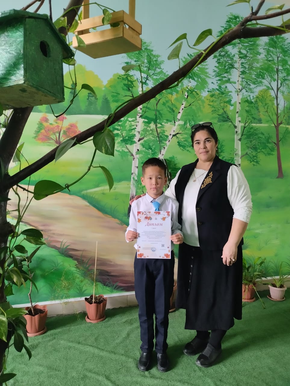 Республика педагогтарының ғылыми-әдістемелік және өнер-білім орталығы ҚР Оқу-ағарту министрлігінің N514 бұйрығы негізінде үш тілде өткізілген Республикалық "Алтын Қазына" байқауына қатысып, "СУРЕТ" номинациясы бойынша жұмысы. Үздік деп танылғаны үшін Жұман Диас Нұрланұлы жетекшісі Сайдирасулова Зора Нуралиевна марапатталады.